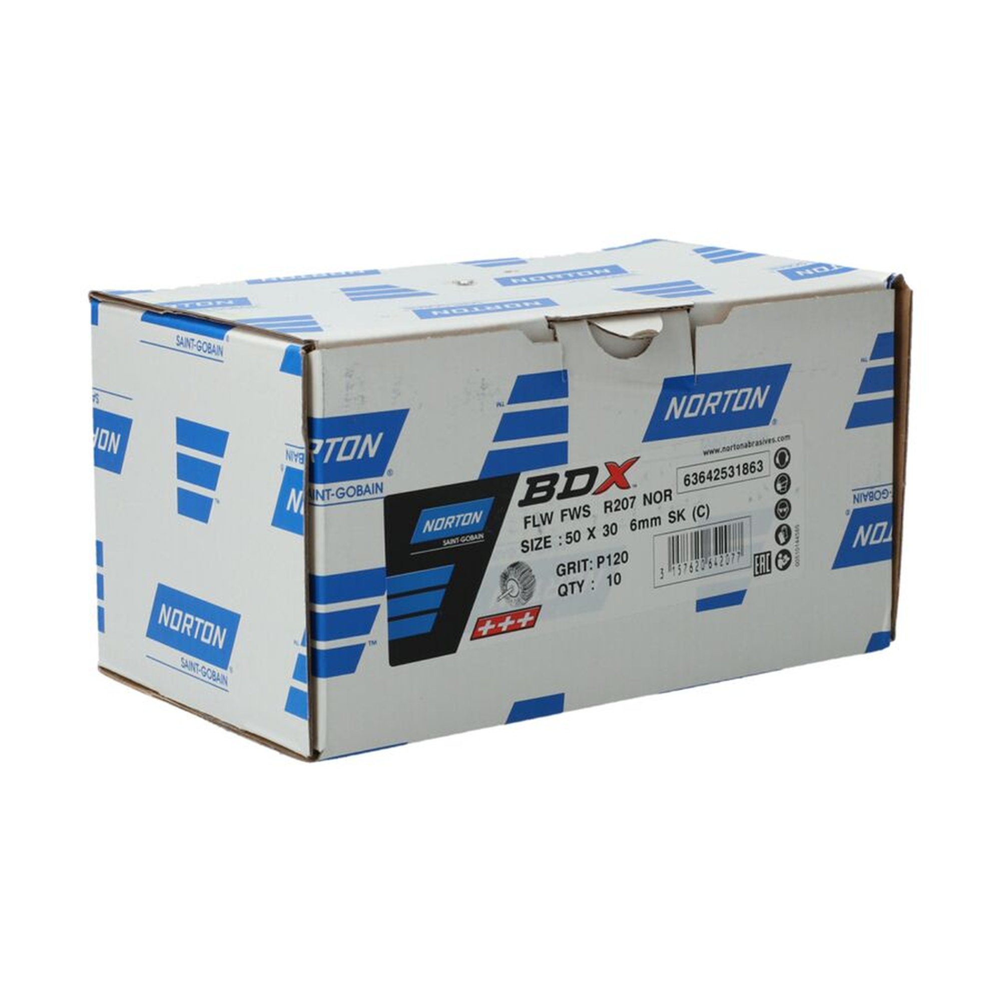 10 x Norton Fächerschleifer Schleifmop mit Schaft 50x30x6 R207 120 Korn
