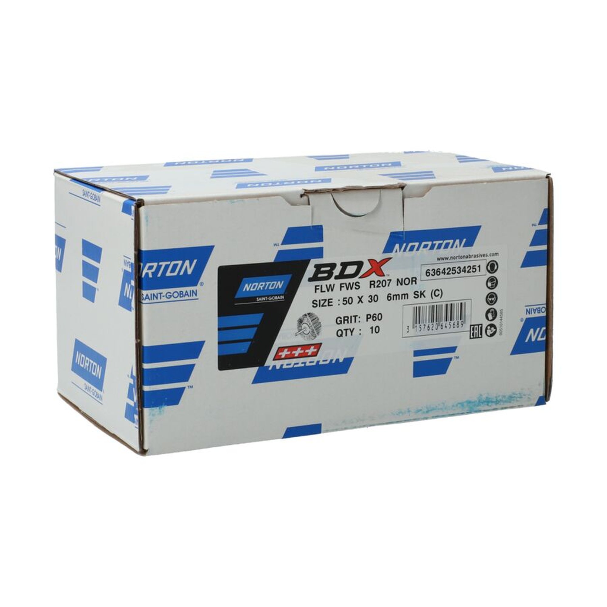 10 x Norton Fächerschleifer Schleifmop mit Schaft 50x30x6 R207 60, MBM: 10