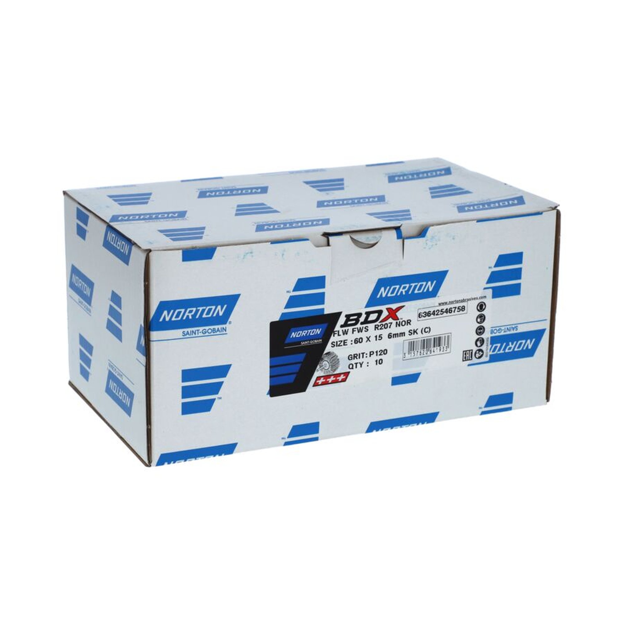 10 x Norton Fächerschleifer Schleifmop mit Schaft 60x15x6 R207 120 Korn