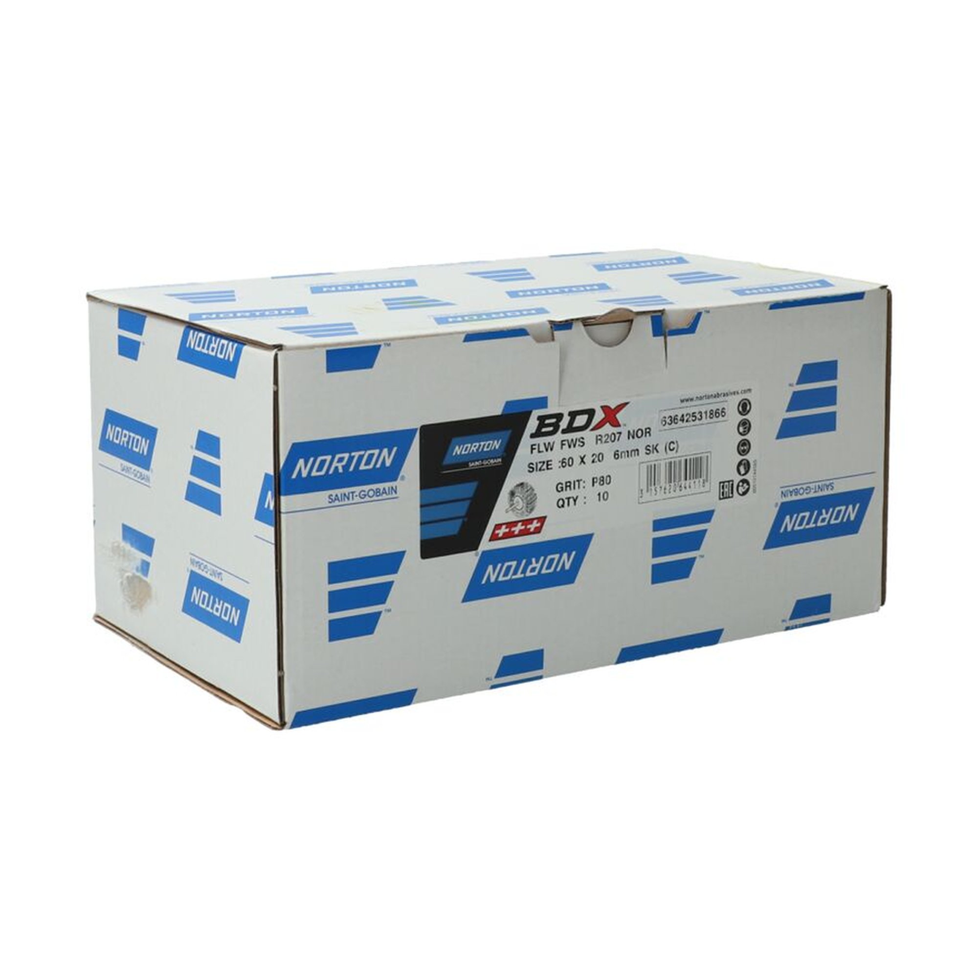 10 x Norton Fächerschleifer Schleifmop mit Schaft 60x20x6 R207 80, ideal für Profis