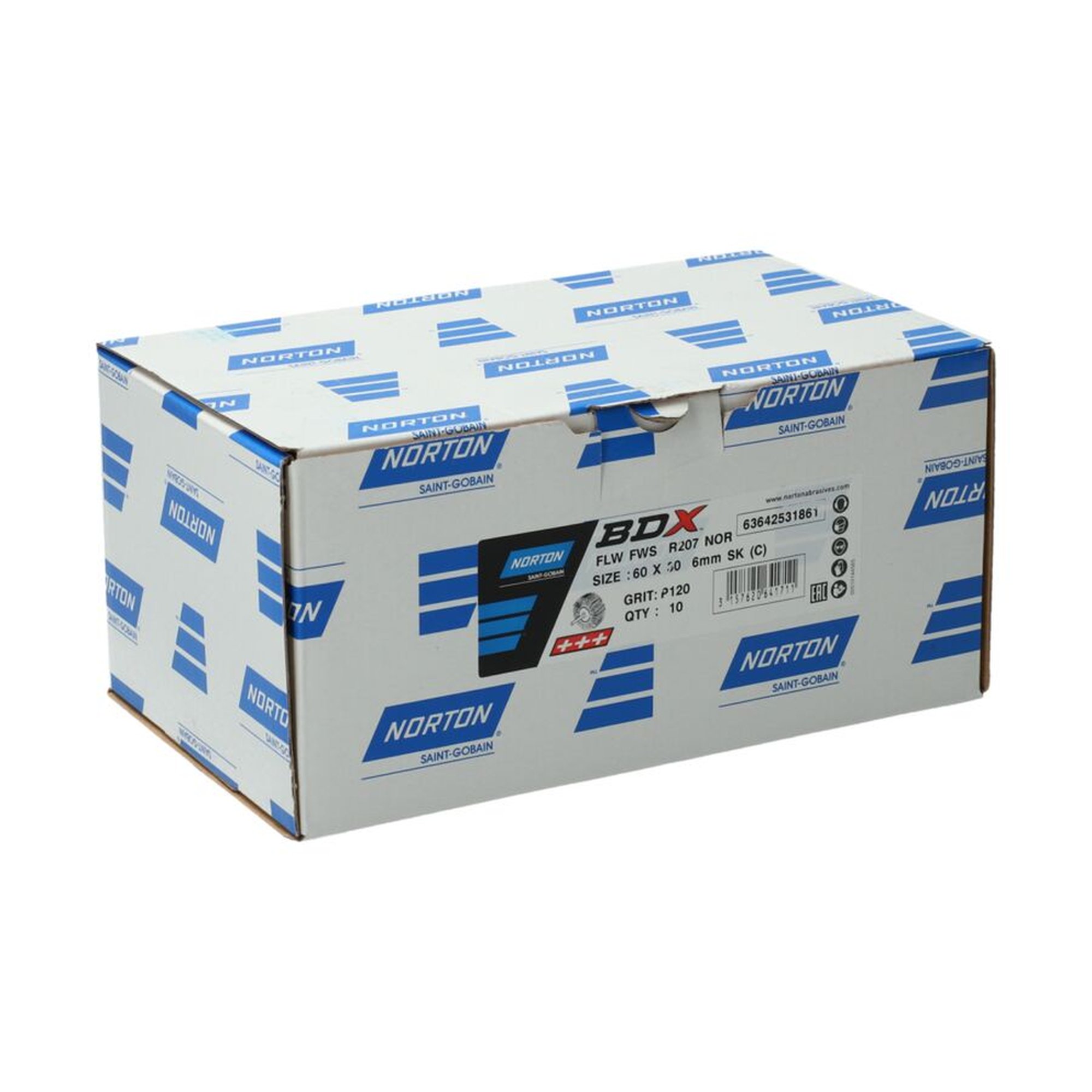 10 x Norton Fächerschleifer Schleifmop mit Schaft 60x30x6 R207 Korn 120
