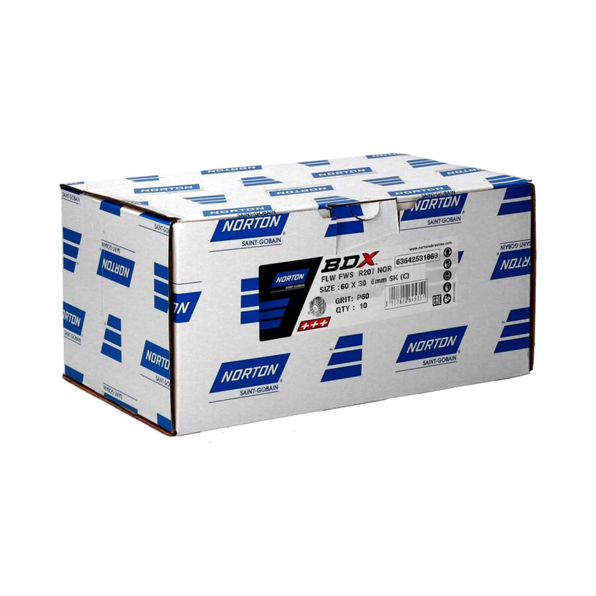 10 x Norton Fächerschleifer Schleifmop mit Schaft 60x30x6 R207 Korn 60