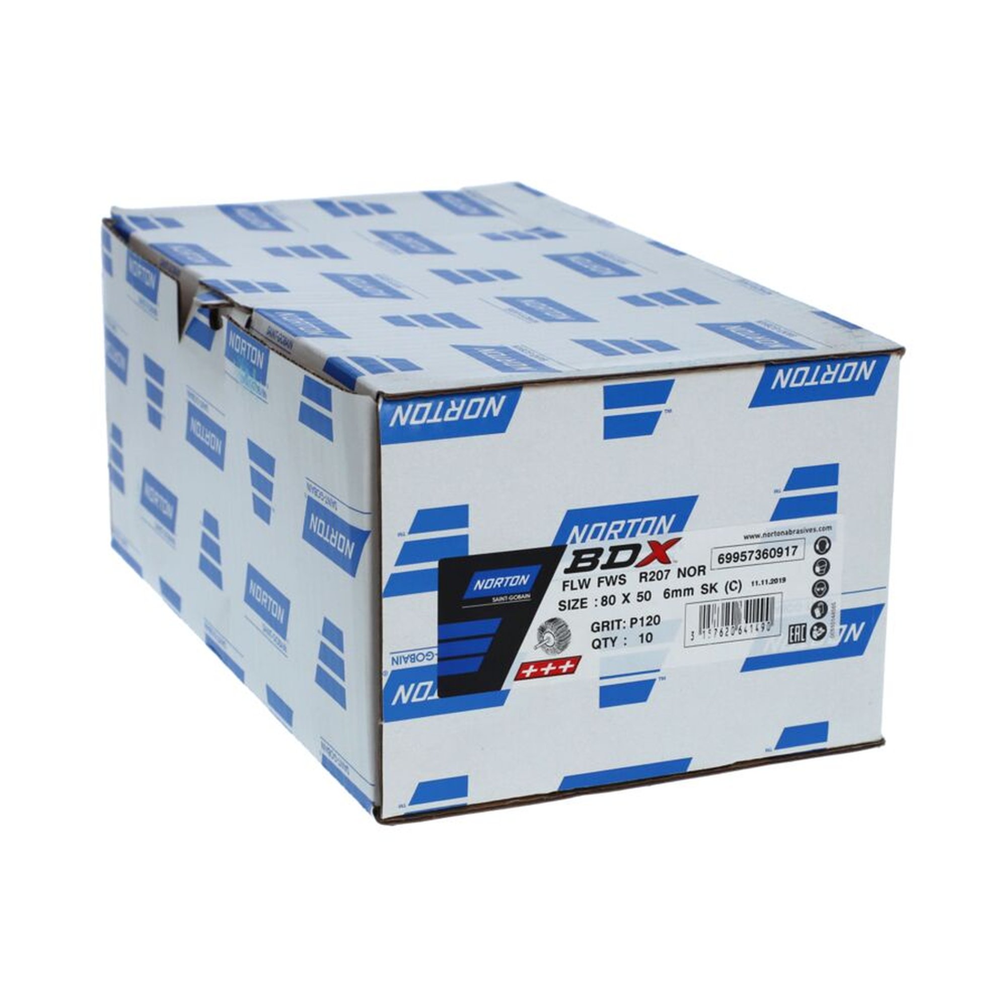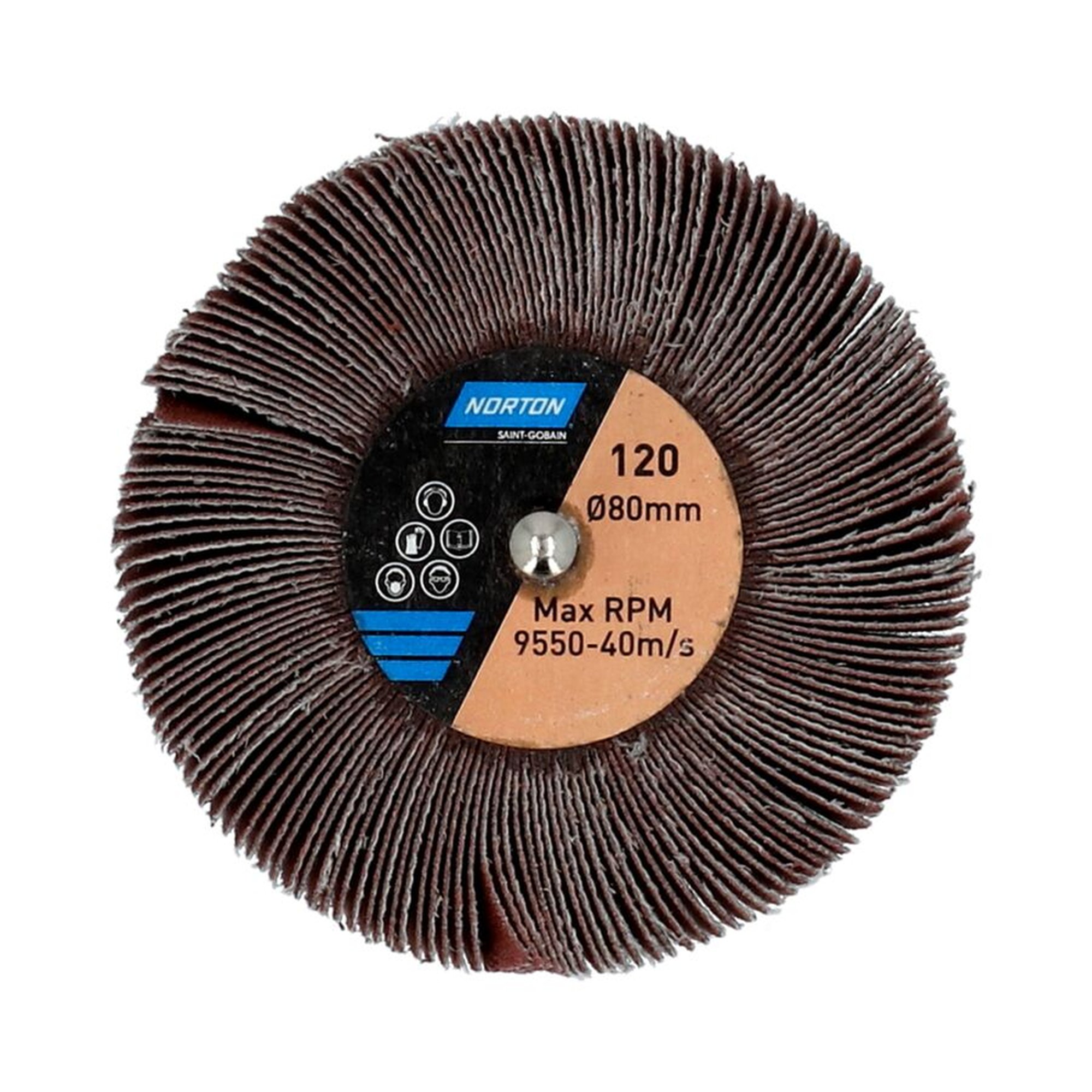 10 x Norton Fächerschleifer Schleifmop mit Schaft 80x50x6 R207 Korn 120