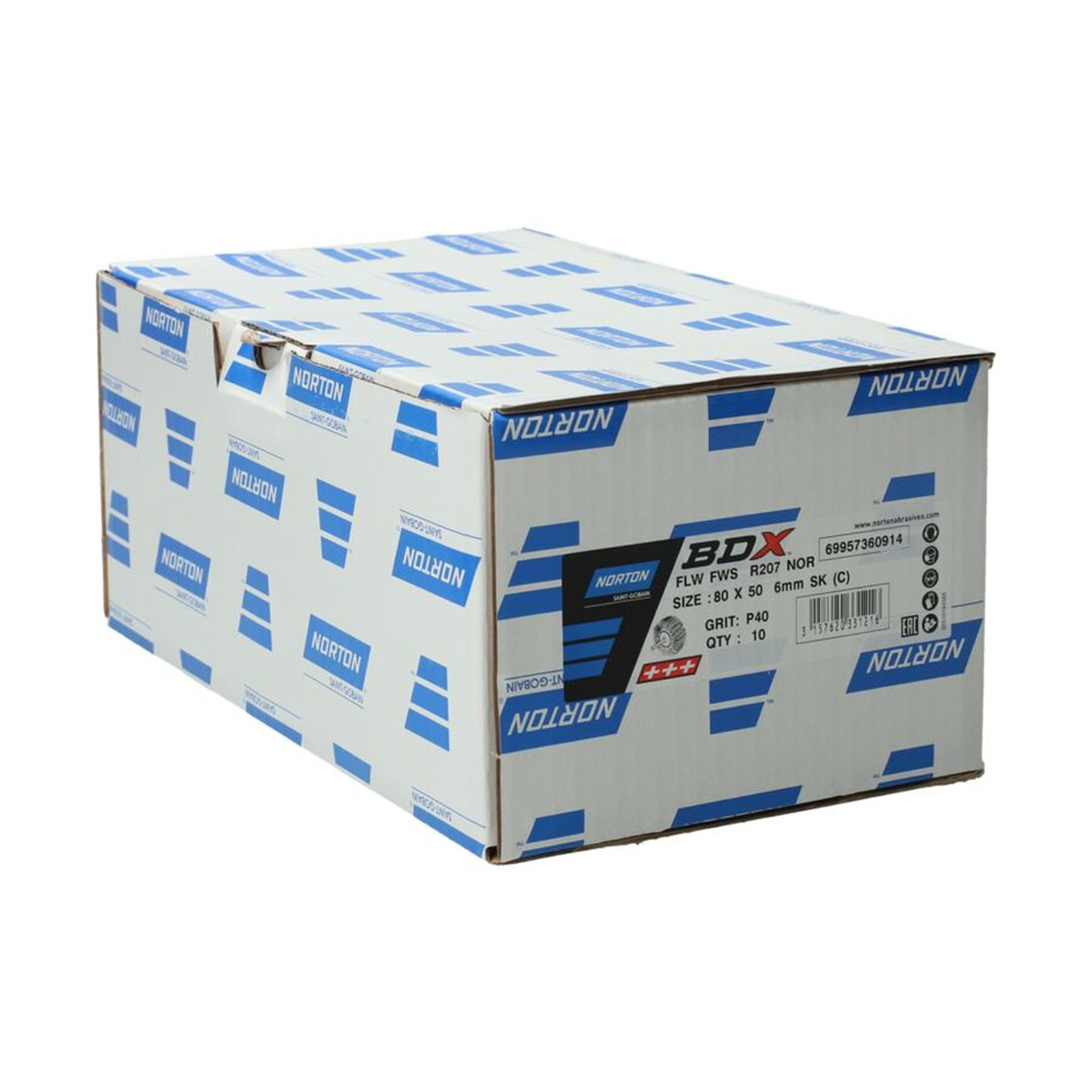 10 x Norton Fächerschleifer Schleifmop mit Schaft 80x50x6 R207 Korn 40