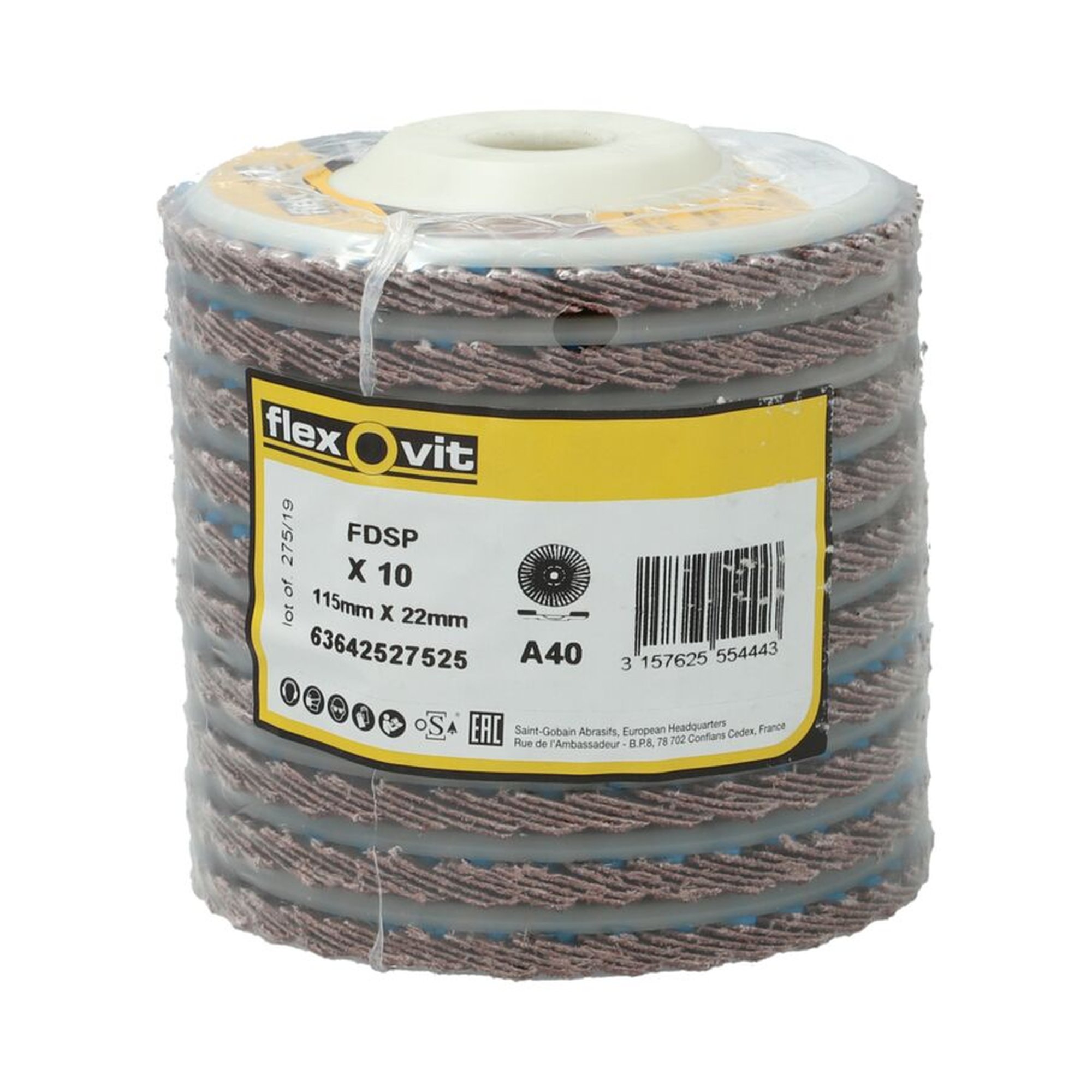 10 x Norton Fächerschleifscheiben 115x22mm K40 Flexovit MERCHANDISING