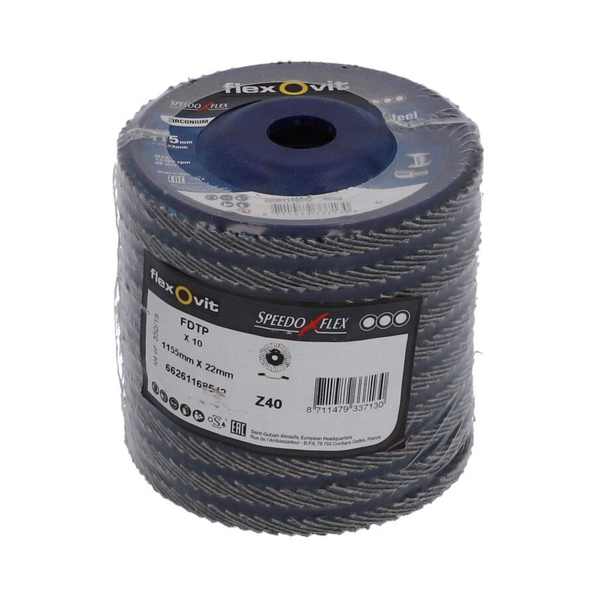 10 x Norton Fächerschleifscheiben 115x22mm K40 Flexovit SPEEDOFLEX, langlebig & effizient