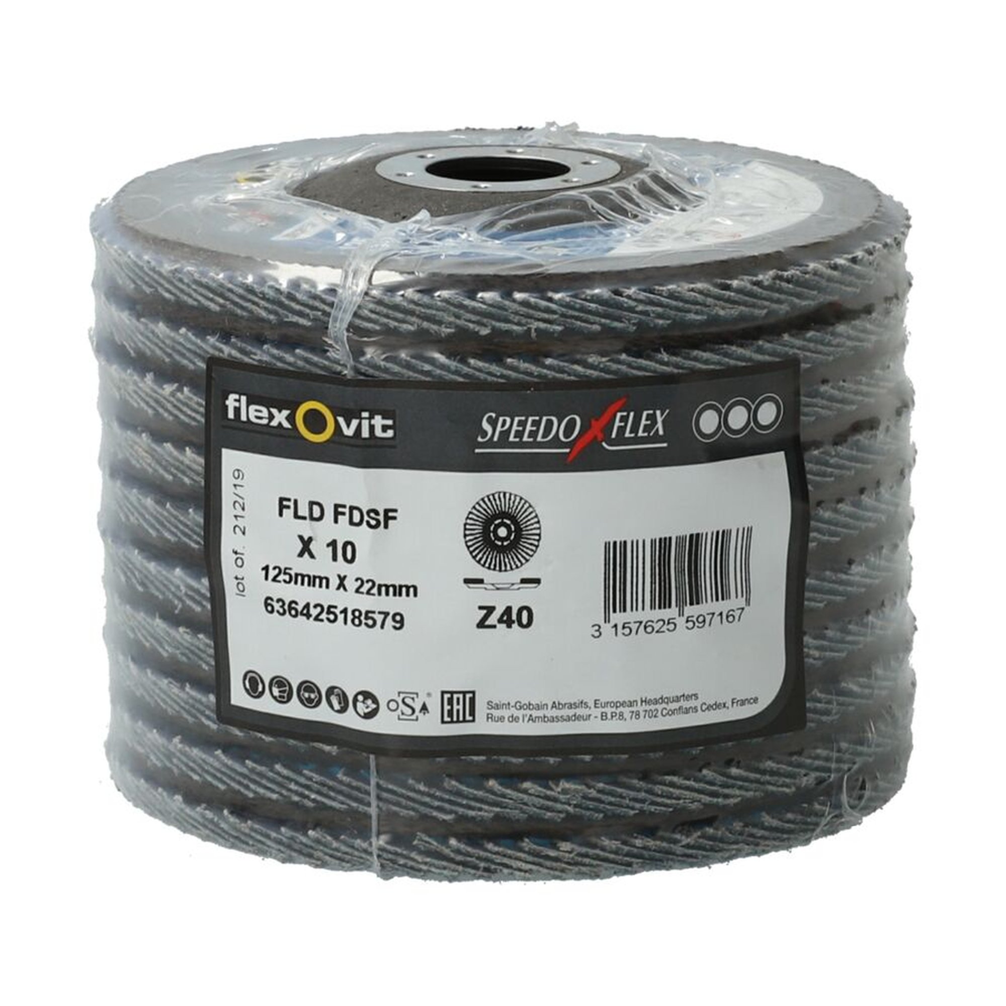 10 x Norton Fächerschleifscheiben 125x22mm K40 Flexovit SPEEDOFLEX, robust & effizient
