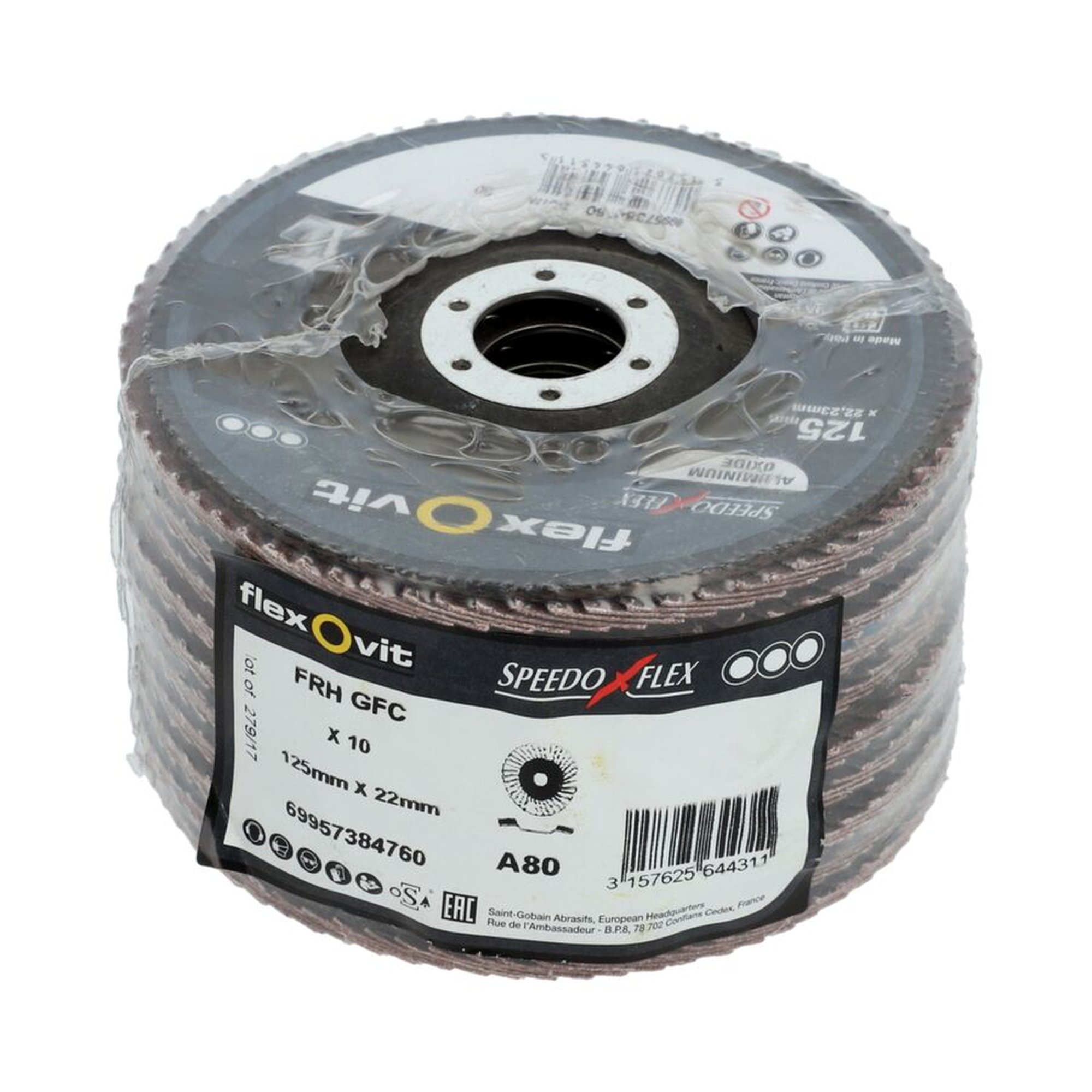 10 x Norton Fächerschleifscheiben 125x22mm K80 Flexovit SPEEDOFLEX, langlebig & effizient