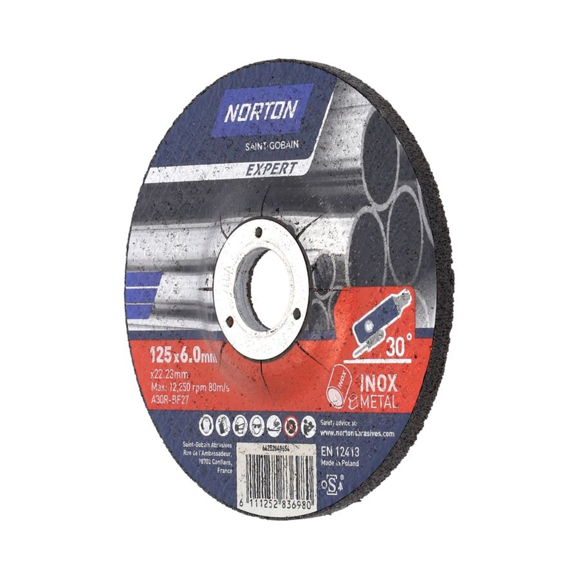 Die gekröpfte Schruppscheibe Norton EXPERT in der Größe 125x6x22.23mm zeichnet sich durch ihre hervorragende Eignung für die Bearbeitung von Metall und Inox aus. Dieses Modell aus der Reihe Norton Expert, bekannt für seine professionellen Hochleistungsscheiben, bietet effizientes Arbeiten mit verschiedenen Materialien, darunter Stahl-Inox, Edelstahl und sogar Stein.