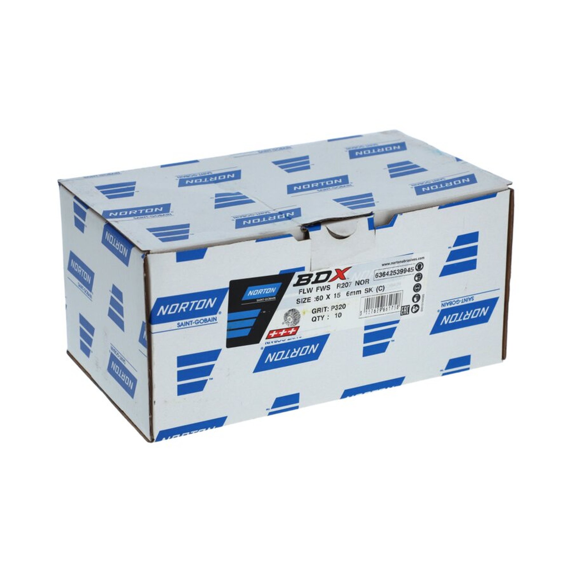 10 x Norton Lamellenschleifräder 60x15mm K320 SK(C) BDX mit Schaft 6mm