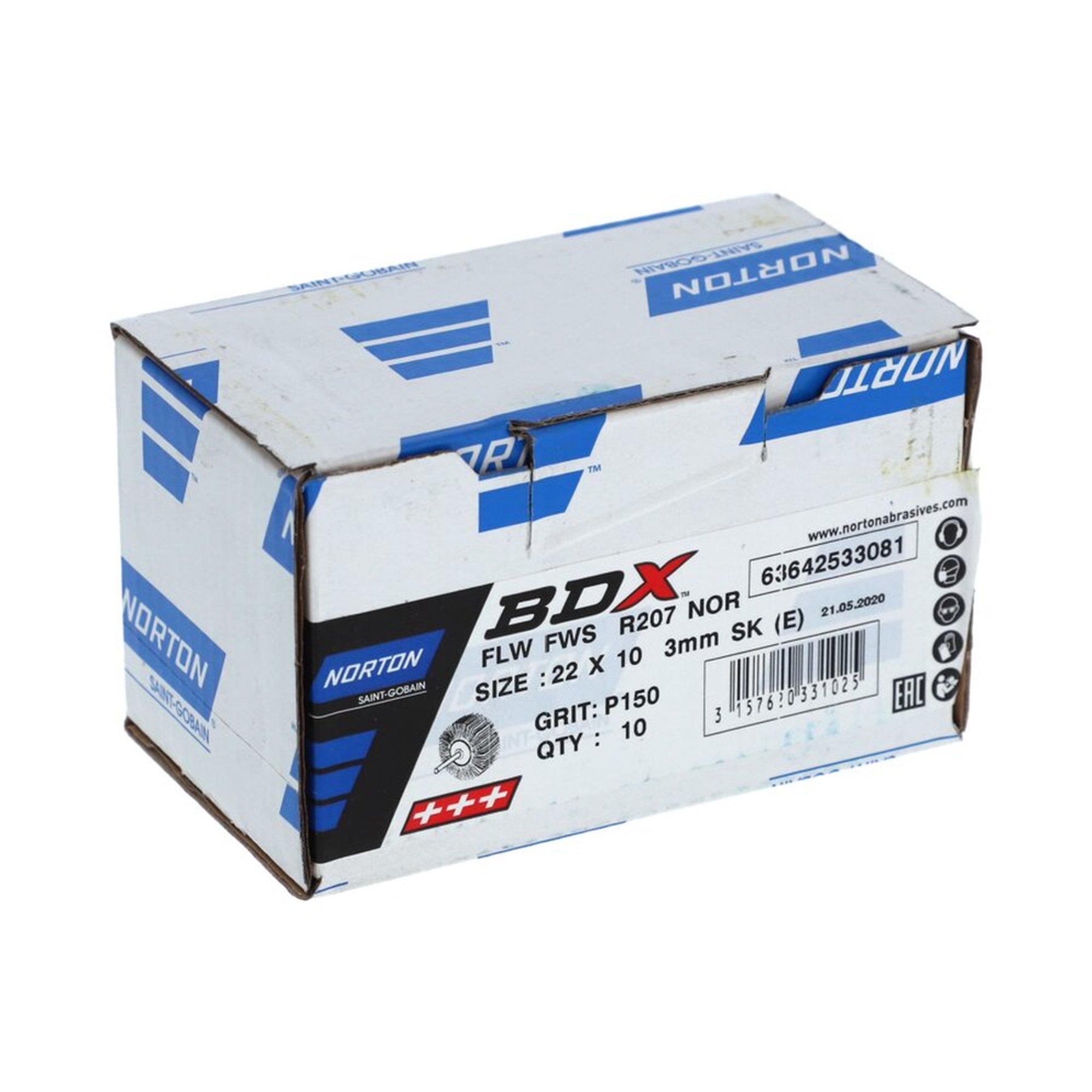 10 x Norton Lamellenschleifräder mit Schaft 22x10mm K150 BDX SK(C) 6mm