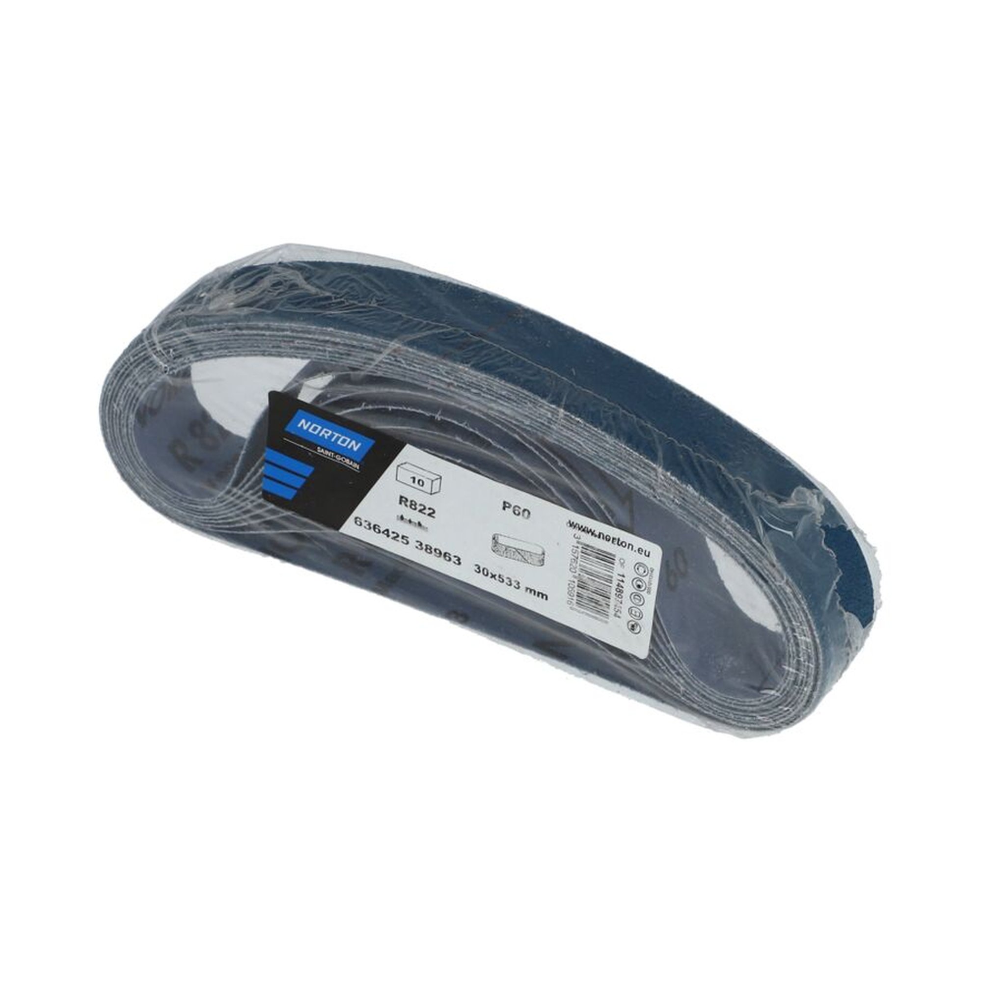 10 x Norton Schleifband NORZON R822 | 30x533mm | Korn 60 | Hochwertige Schleifbänder
