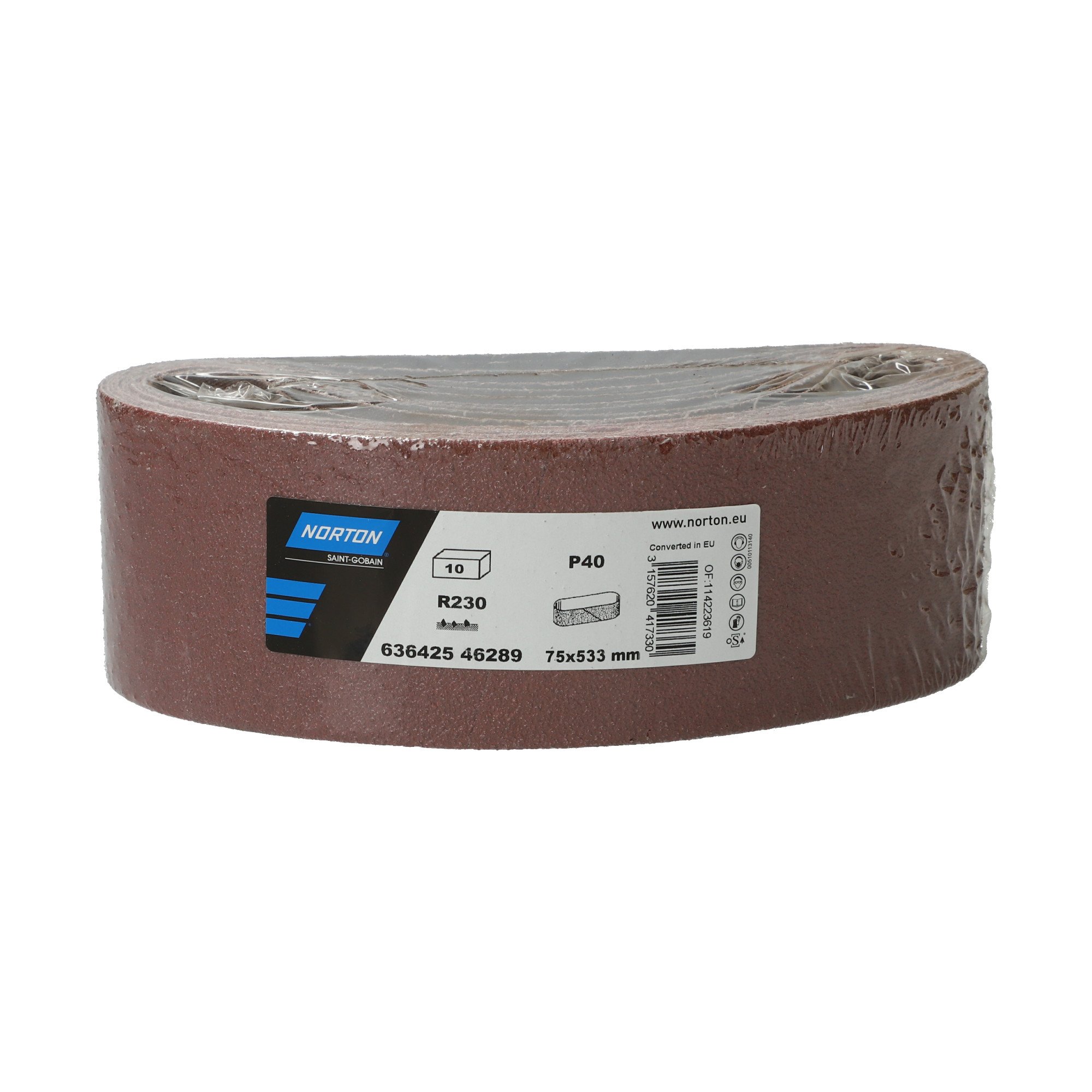 10 x Norton Schleifband R230 | 75x533mm | Korn 40 | Hochwertige Schleifbänder