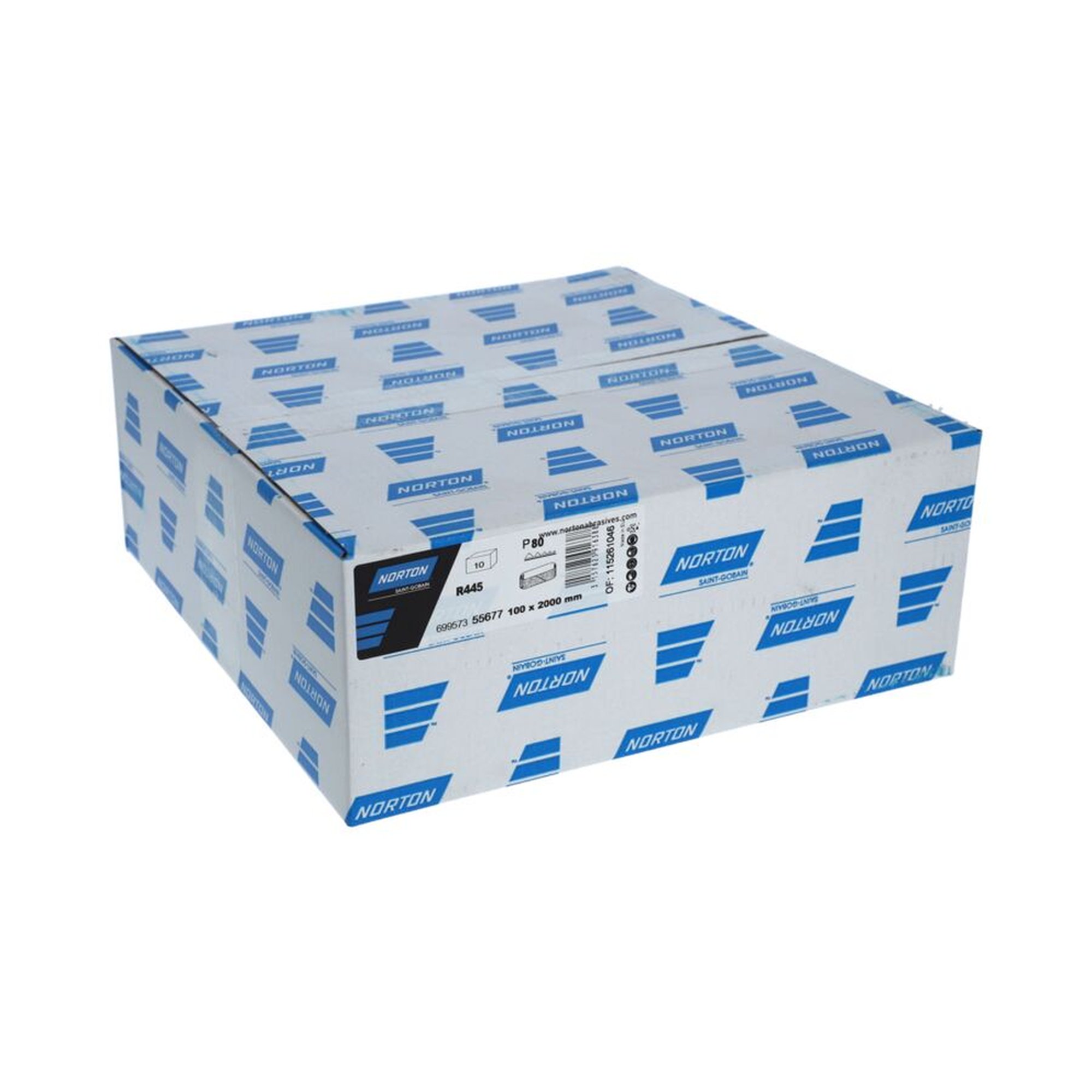 10 x Norton Schleifband R445 | 100 x 2000 mm | Korn 80 | Hochwertige Schleifbänder