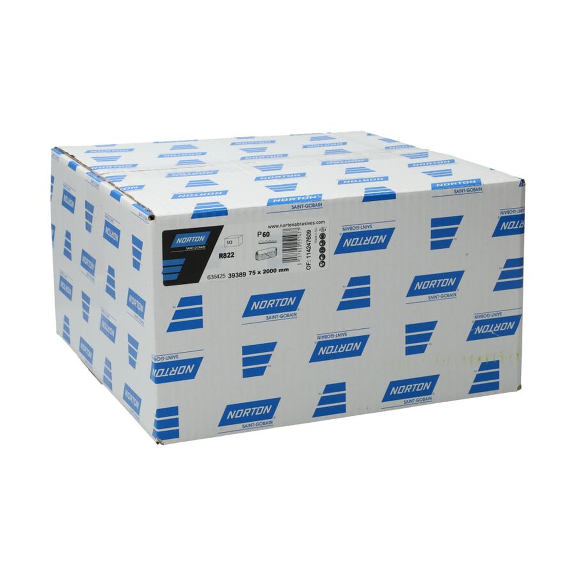 Das NORTON Schleifband R822 ist ein hochwertiges Produkt, das in einer Packung mit 10 Stück erhältlich ist. Jedes Schleifband hat eine Größe von 75x2000 und eine Körnung von 60.