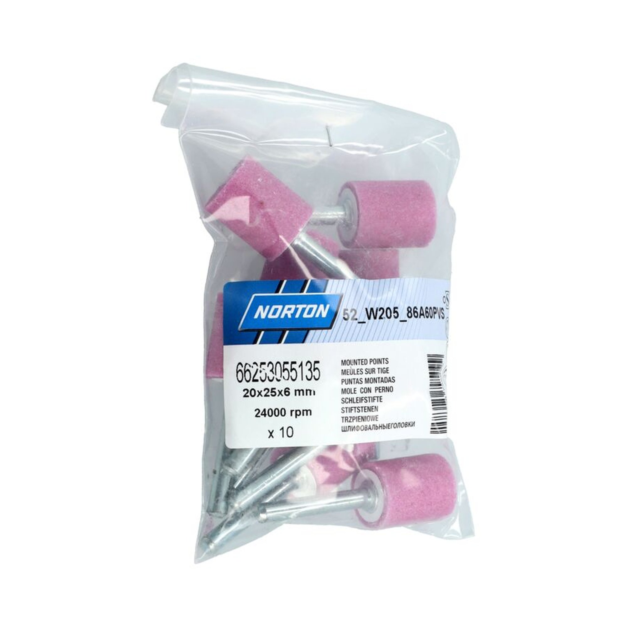 10 x Norton Schleifstift W205 20x25mm 86A 60 PVS, Schaft 6x40mm, hochwertige Qualität