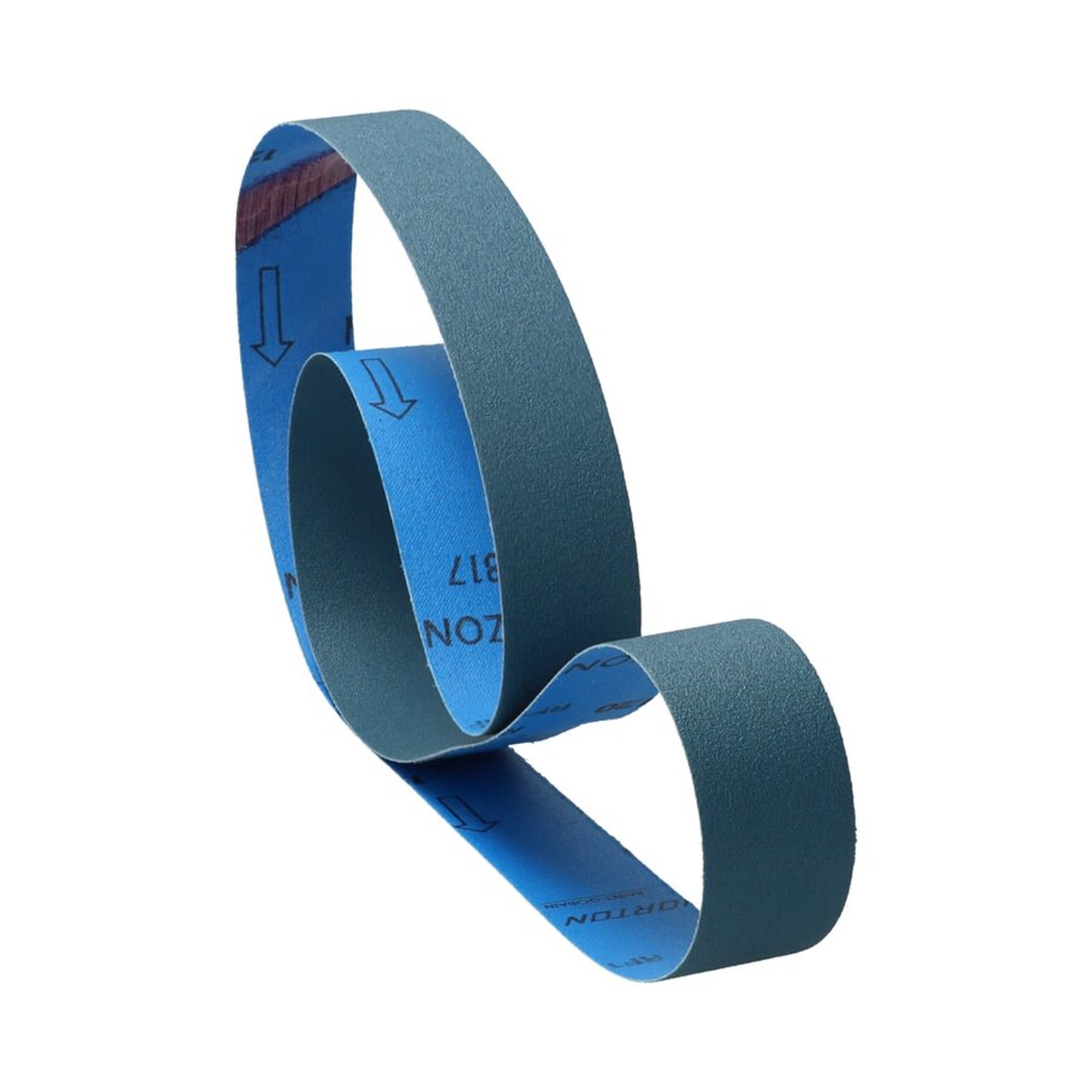 Ideal für anspruchsvolle Schleifarbeiten: Hochleistungs-Schleifband (40x1650mm, K120) mit Norzon-Korn, robustem Polyestergewebe und starker Kunstharzbindung.,