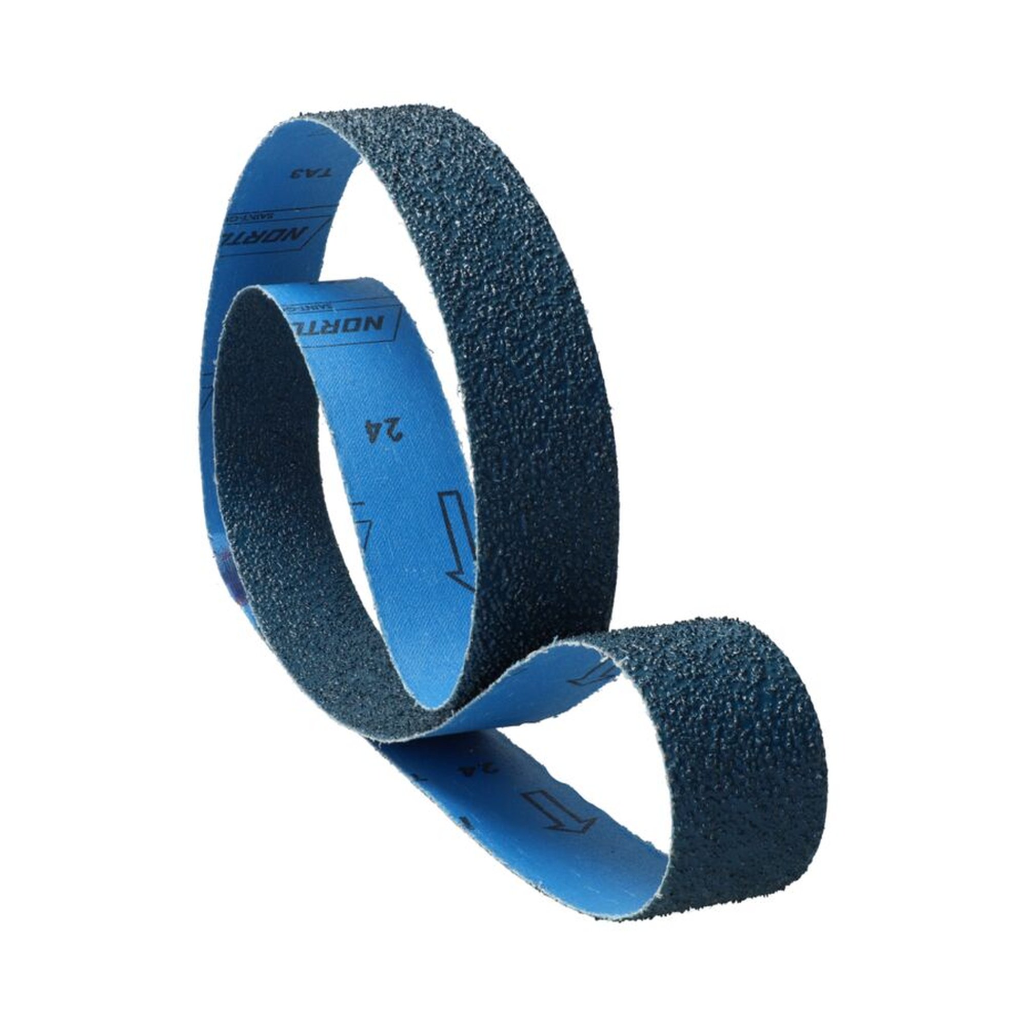 Die Farbe Blau sowie die Produktkategorie Narr/Port/File Belts unterstreichen die professionelle Anwendung und Qualität der Norton R817 Schmalbänder.