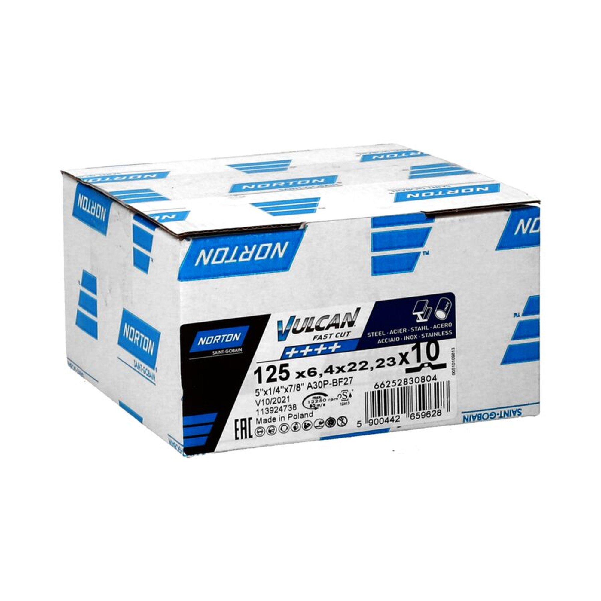 10 x Norton Schruppscheibe gekröpft 125x6,4x22,23 A 30 P Vulcan Fast Cut, hohe Leistung