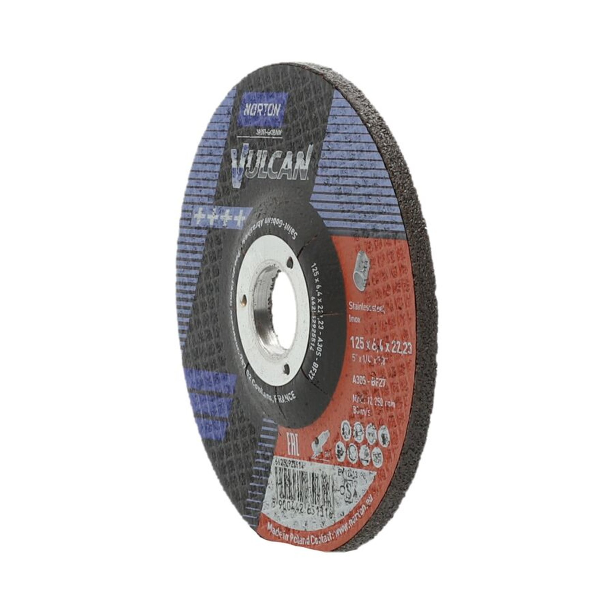 Die 10x NORTON Schruppscheibe gekröpft | 125x6,4x22,23 A 30 S Inox Vulcan Inox ist ein hochwertiges Produkt, das von NORTON hergestellt wird. NORTON ist bekannt für seine große Auswahl an Schneide- und Schleifscheiben, die den Anforderungen von Industriekunden gerecht werden.