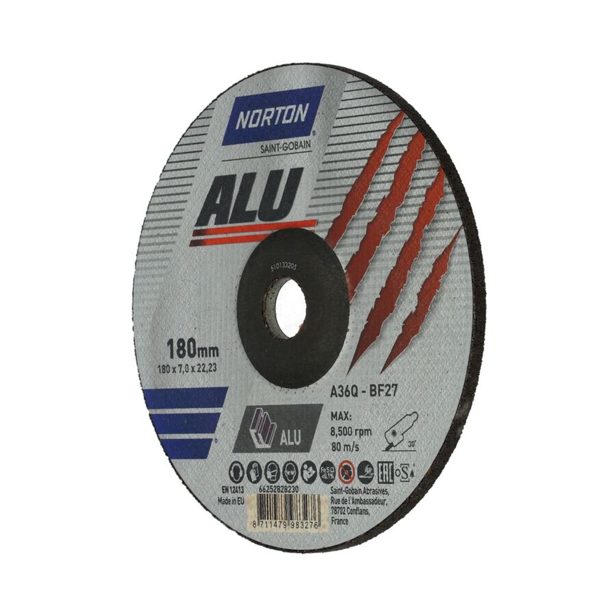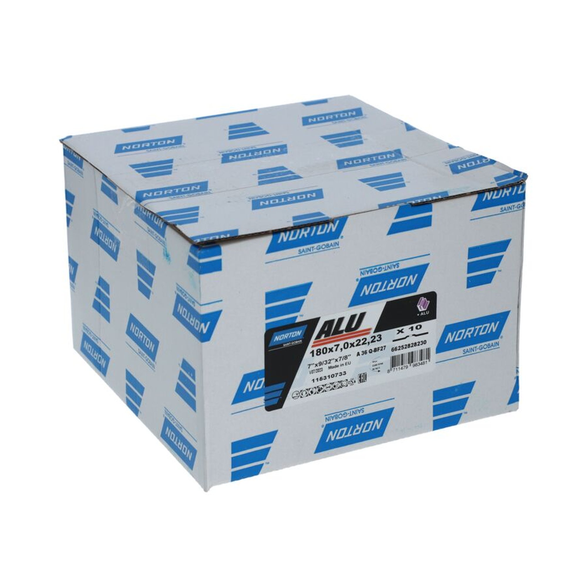 Die 10x NORTON Schruppscheibe gekröpft | 180x7,0x22,23 A 36 Q Alu ist ein hochwertiges Produkt, das speziell für die Bearbeitung von Aluminium entwickelt wurde. Mit ihrer fortschrittlichen Korn- und Bindungstechnologie setzt sie einen industriellen Leistungsstandard und bietet eine optimale Leistung bei allen Aluminiumanwendungen.