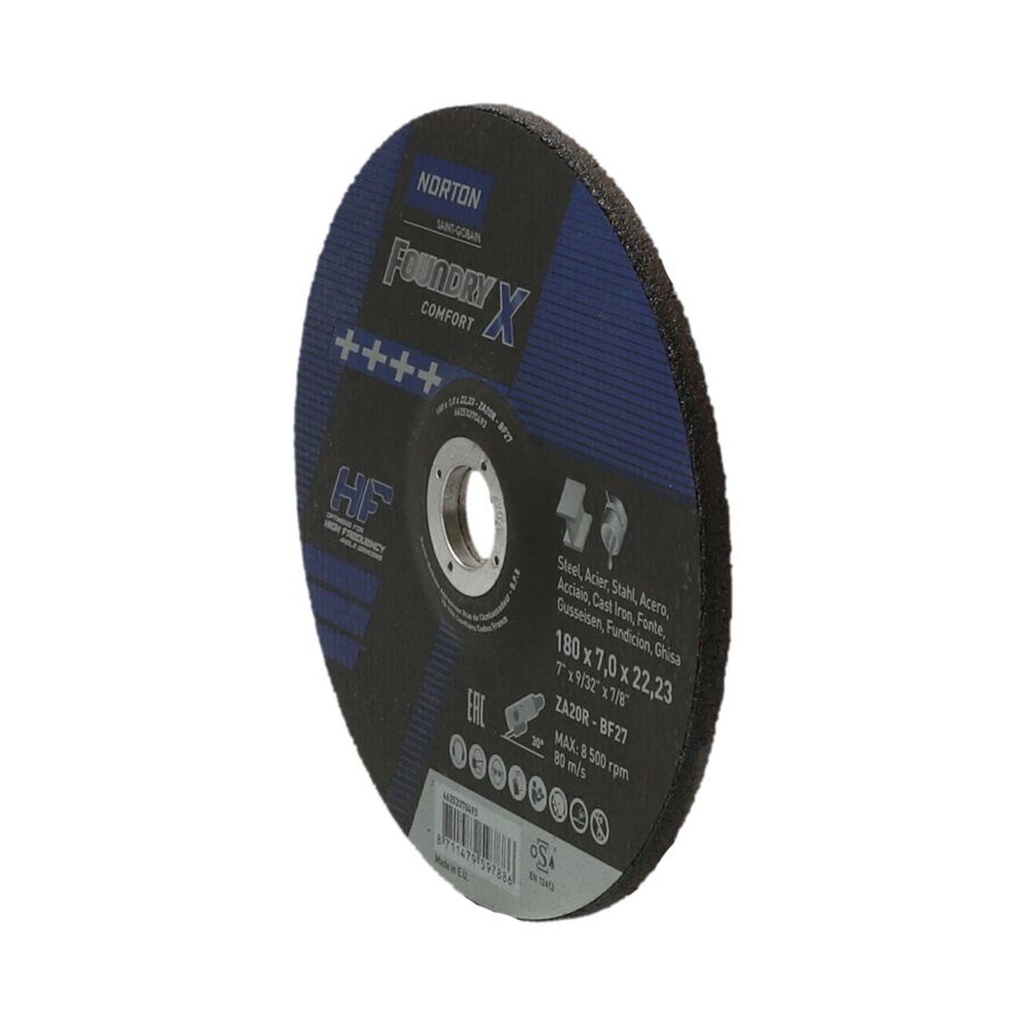 Besonderheiten: Die 10x NORTON Schruppscheibe gekröpft | HF* 180x7,0x22,23 ZA20R Norzon Foundry X sind hochwertige Schleifscheiben, die eine optimale Balance zwischen Materialabtrag und Lebensdauer bieten
