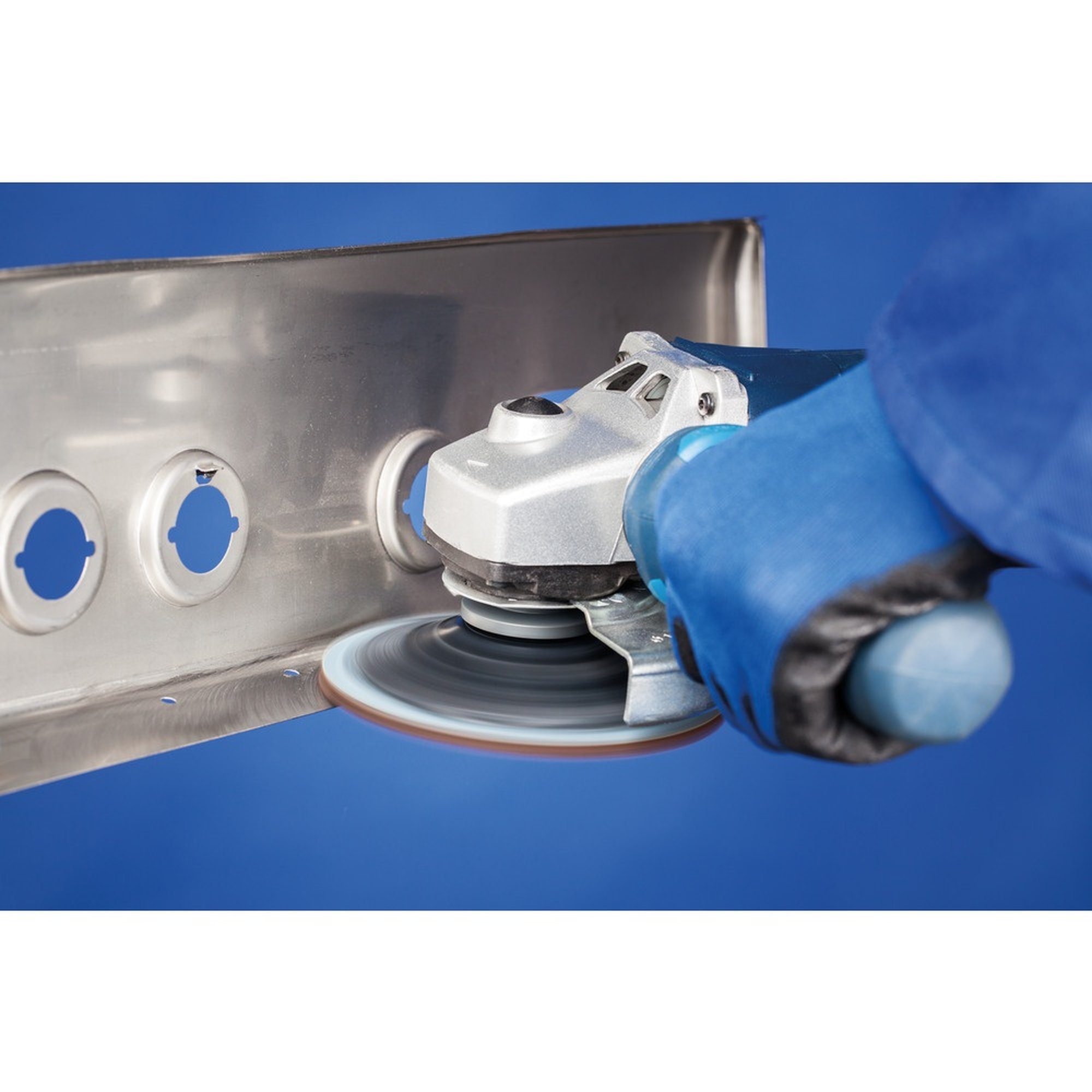 Vorteile: Universell einsetzbar zur Bearbeitung mittlerer und großer Metallflächen. Effektive Beseitigung von Vorschleifspuren, Entfernung von Oxidation und leichte Entgratarbeiten. Das Ergebnis sind ansprechende, mattierte und seidenmatte Oberflächen