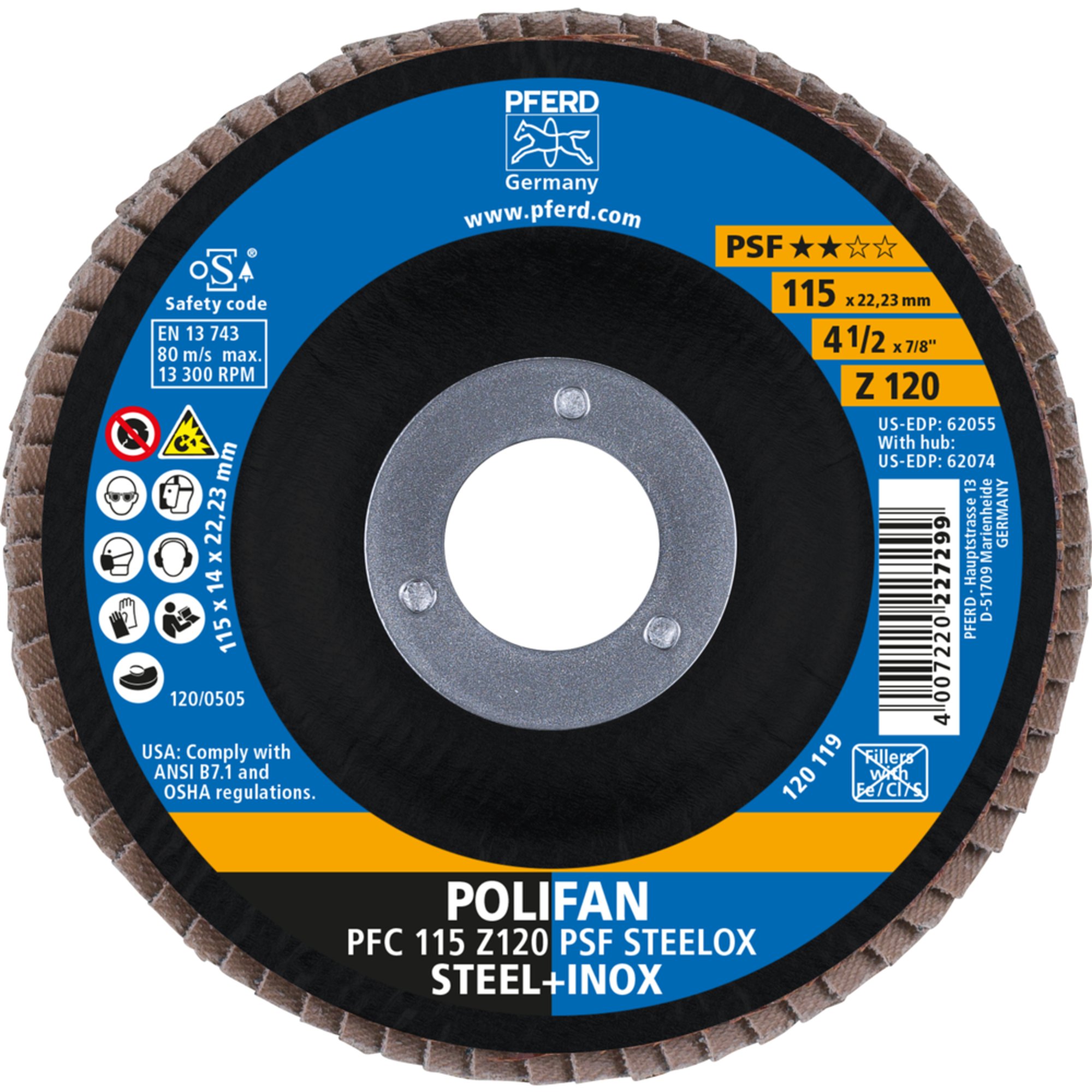 10 x PFERD POLIFAN-Fächerscheibe PFC 115 Z 120 PSF STEELOX