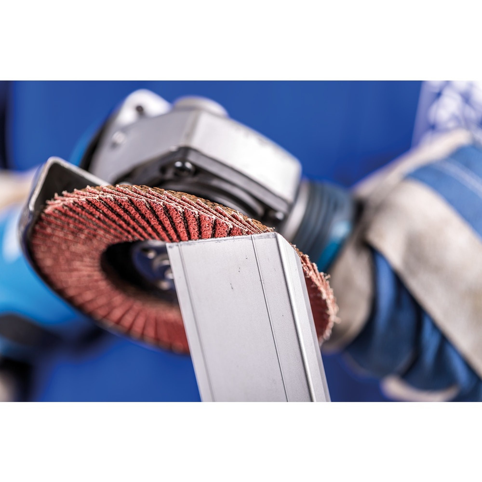 Vorteile: - Hochwertige POLIFAN-Fächerscheibe spezialisiert auf schlecht wärmeleitende Werkstoffe wie INOX und Aluminium. - Besonders kühler Schliff für eine hohe Abtragsleistung und lange Standzeit. - Robustes Trägermaterial und Zirkonkorund