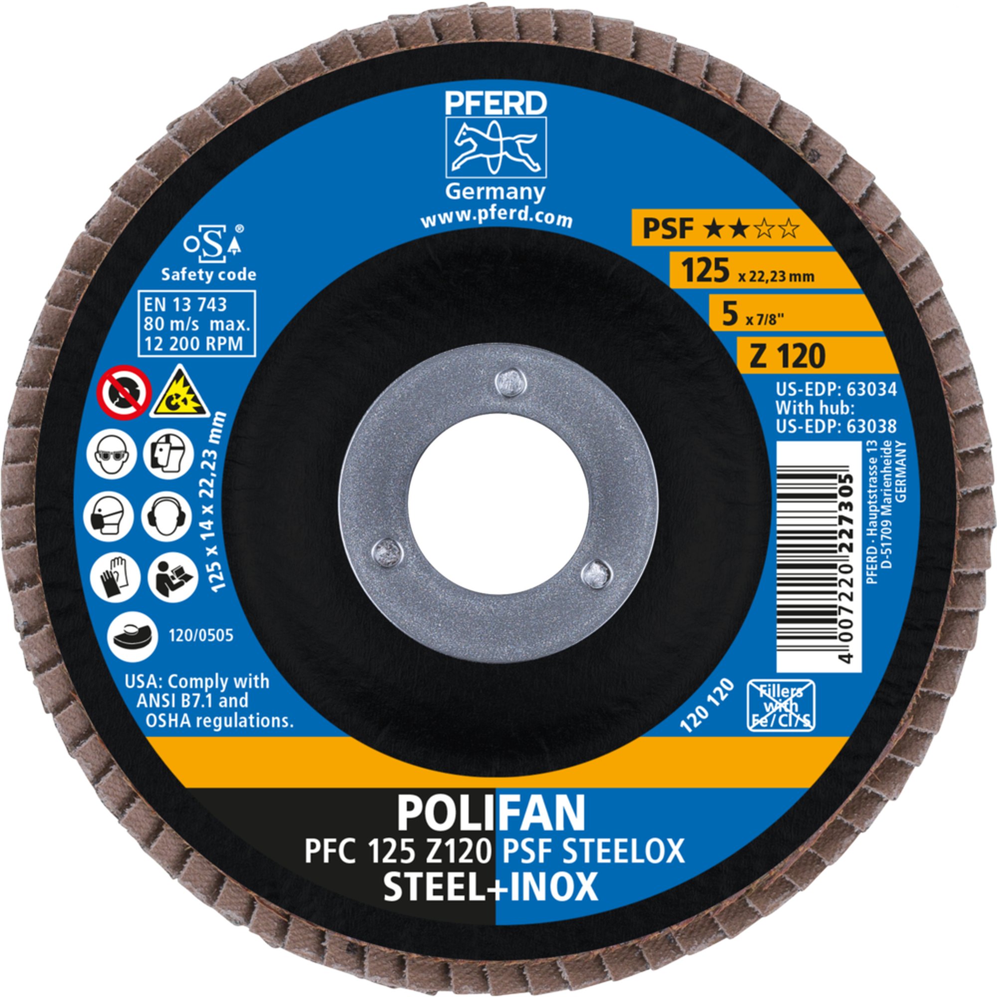 10 x PFERD POLIFAN-Fächerscheibe PFC 125 Z 120 PSF STEELOX