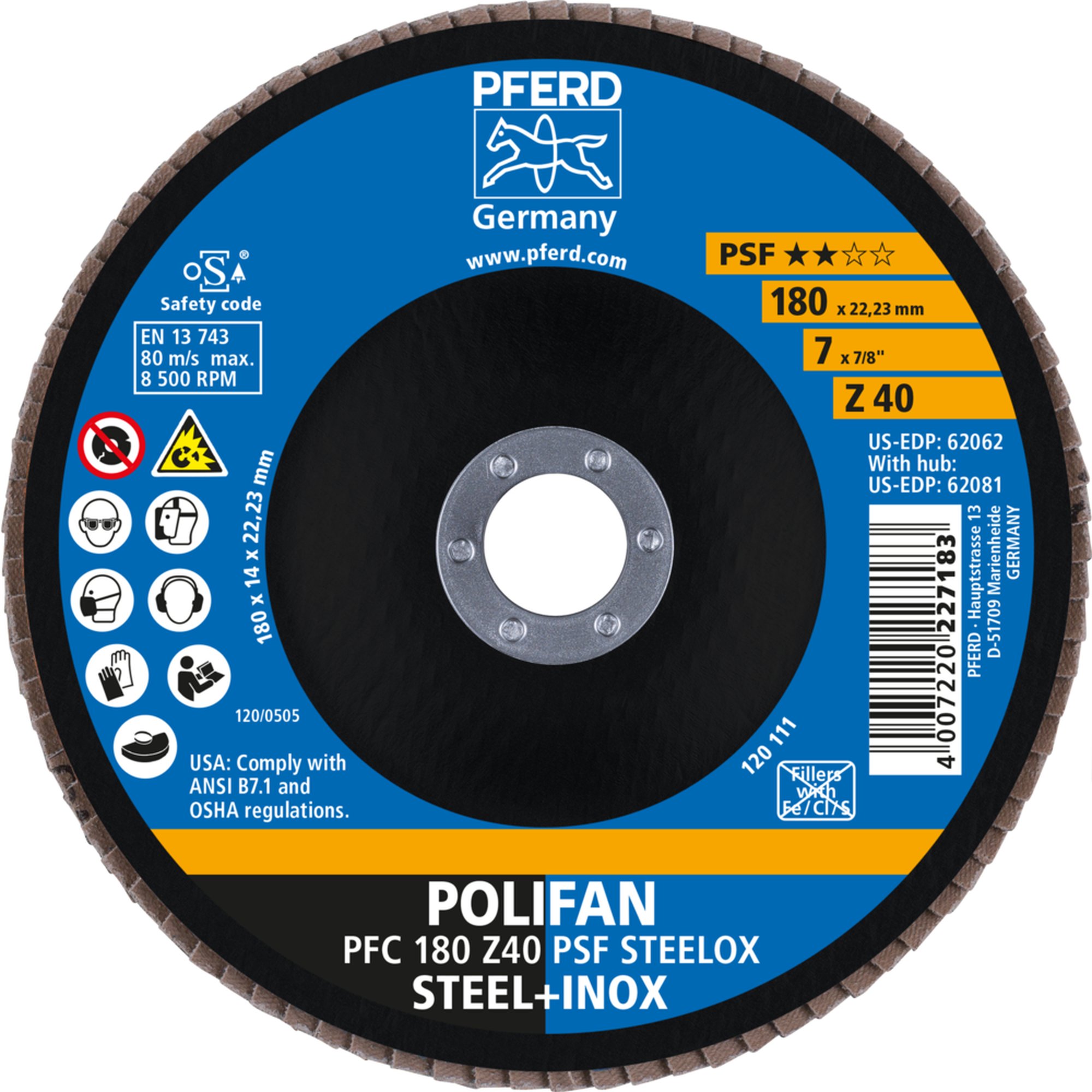10 x PFERD POLIFAN-Fächerscheibe PFC 180 Z 60 PSF STEELOX