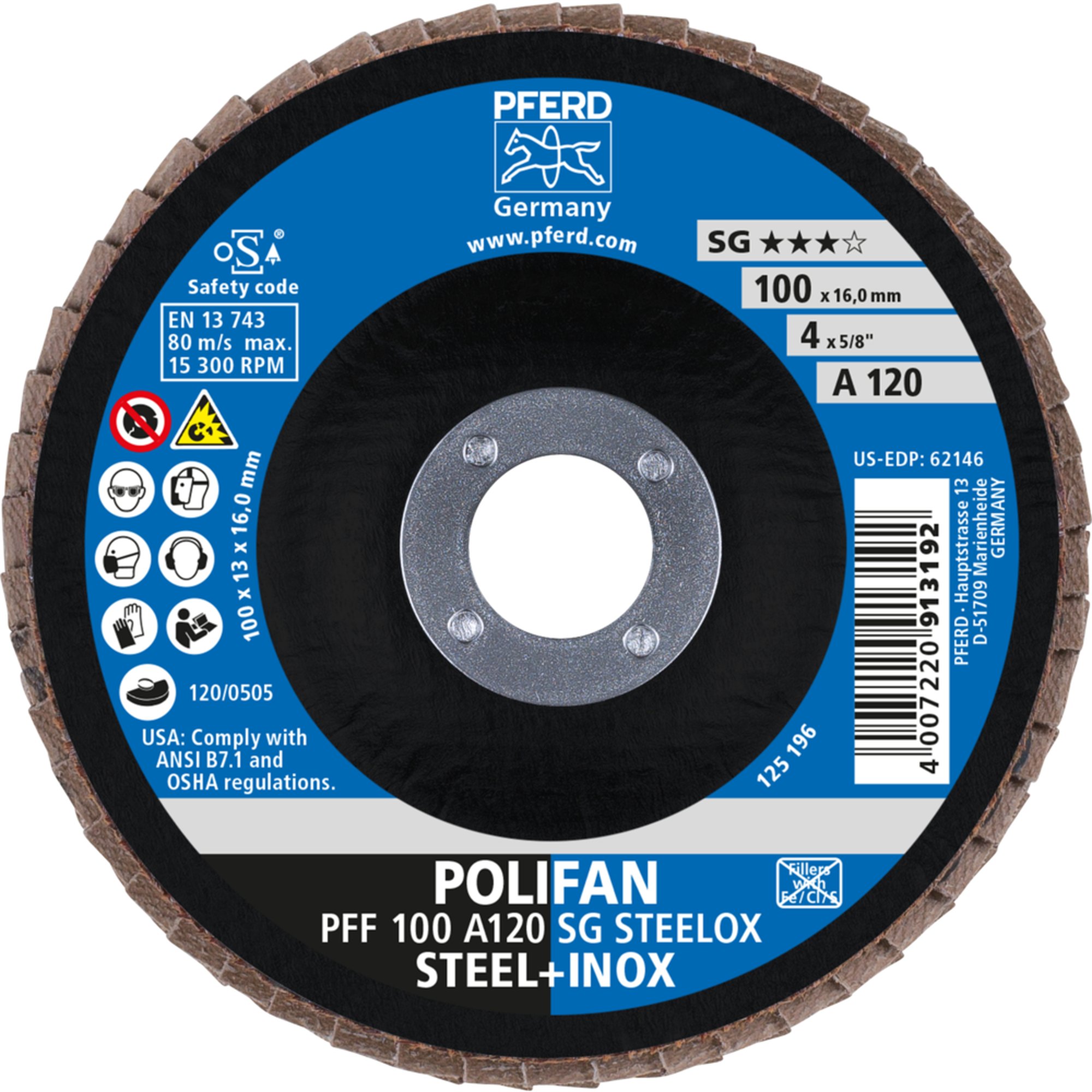10 x PFERD POLIFAN-Fächerscheibe PFF 100 A 120 SG STEELOX/16,0