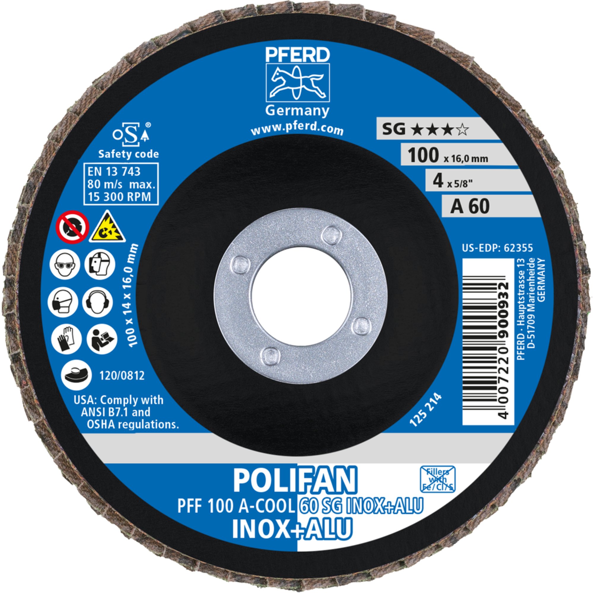 10 x PFERD POLIFAN-Fächerscheibe PFF 100 A-COOL 60 SG INOX+ALU/16,0