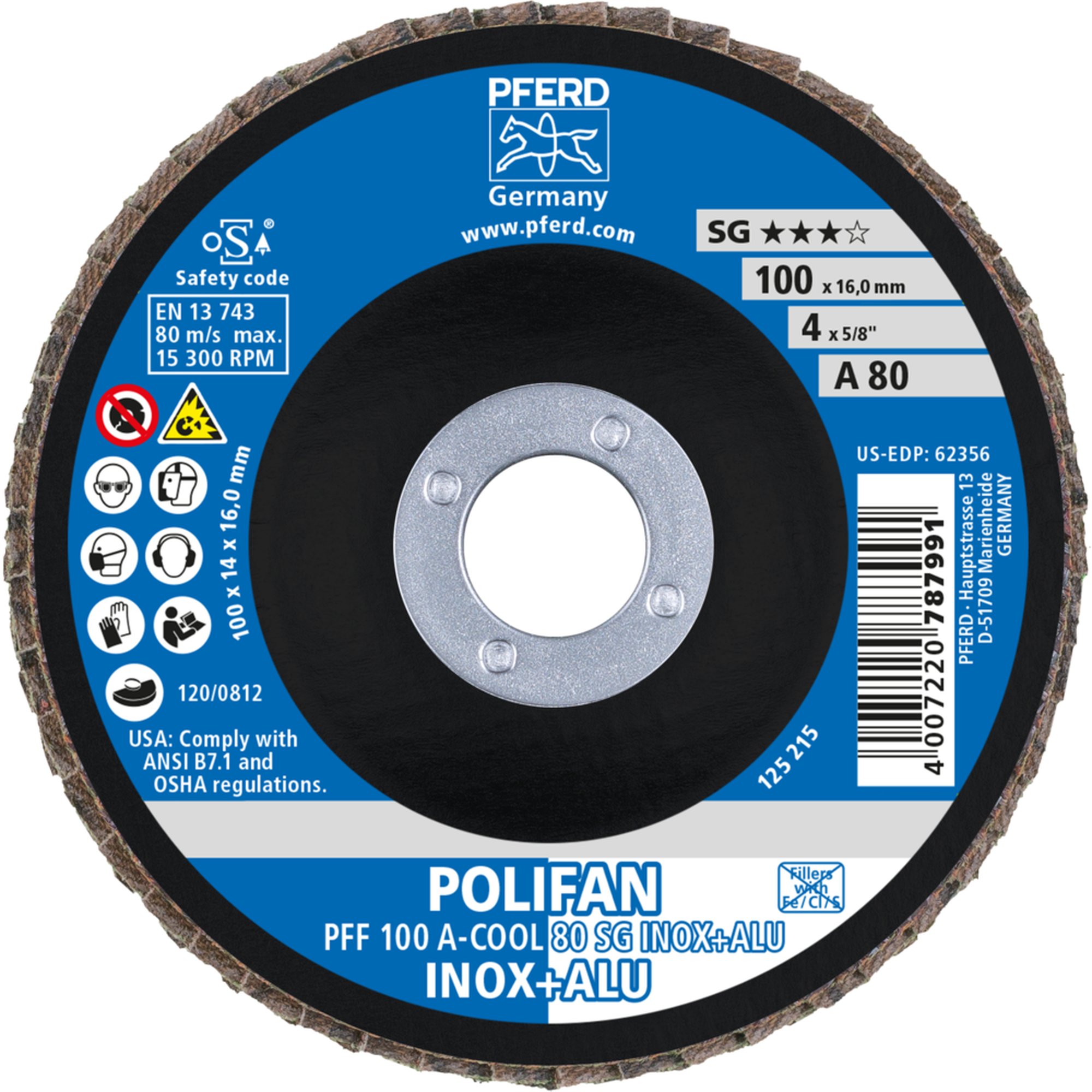 10 x PFERD POLIFAN-Fächerscheibe PFF 100 A-COOL 80 SG INOX+ALU/16,0
