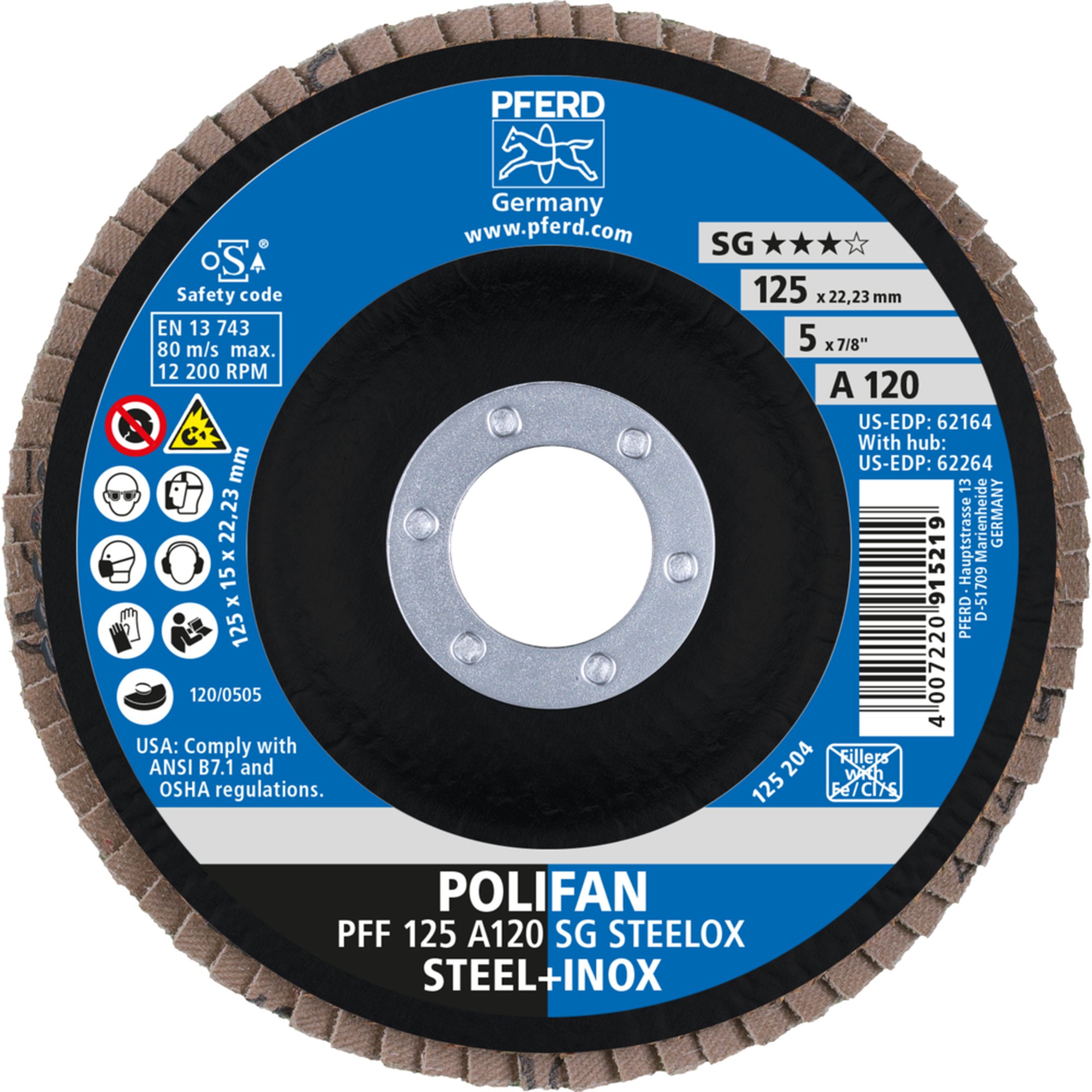 10 x PFERD POLIFAN-Fächerscheibe PFF 125 A 120 PSF STEELOX