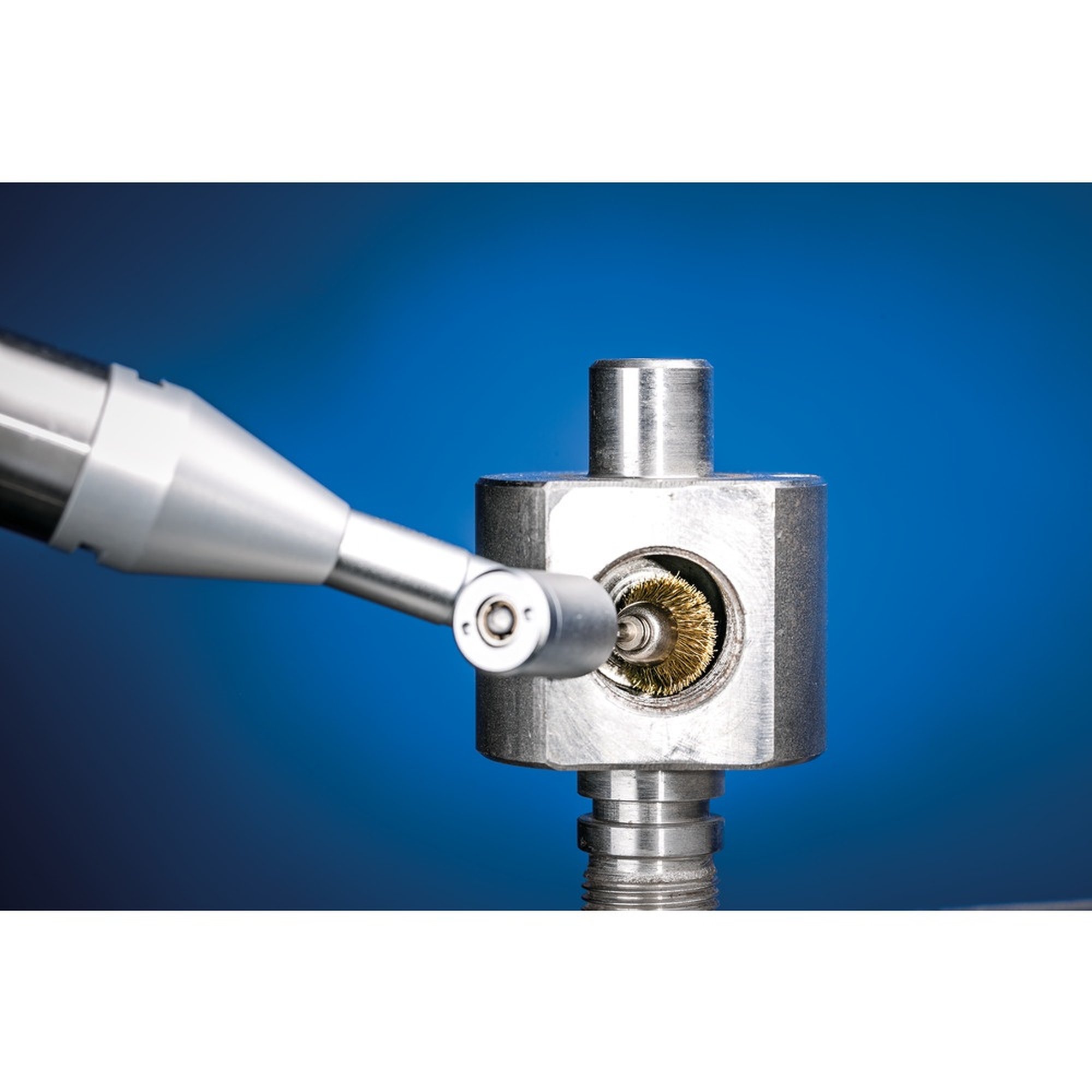 Eigenschaften: Ideal für leichte Bürstarbeiten wie Entgraten, Reinigen und Polieren. Besonders geeignet für kleine Flächen aufgrund des stirnseitigen Einsatzes mit der gesamten Bürstenoberfläche