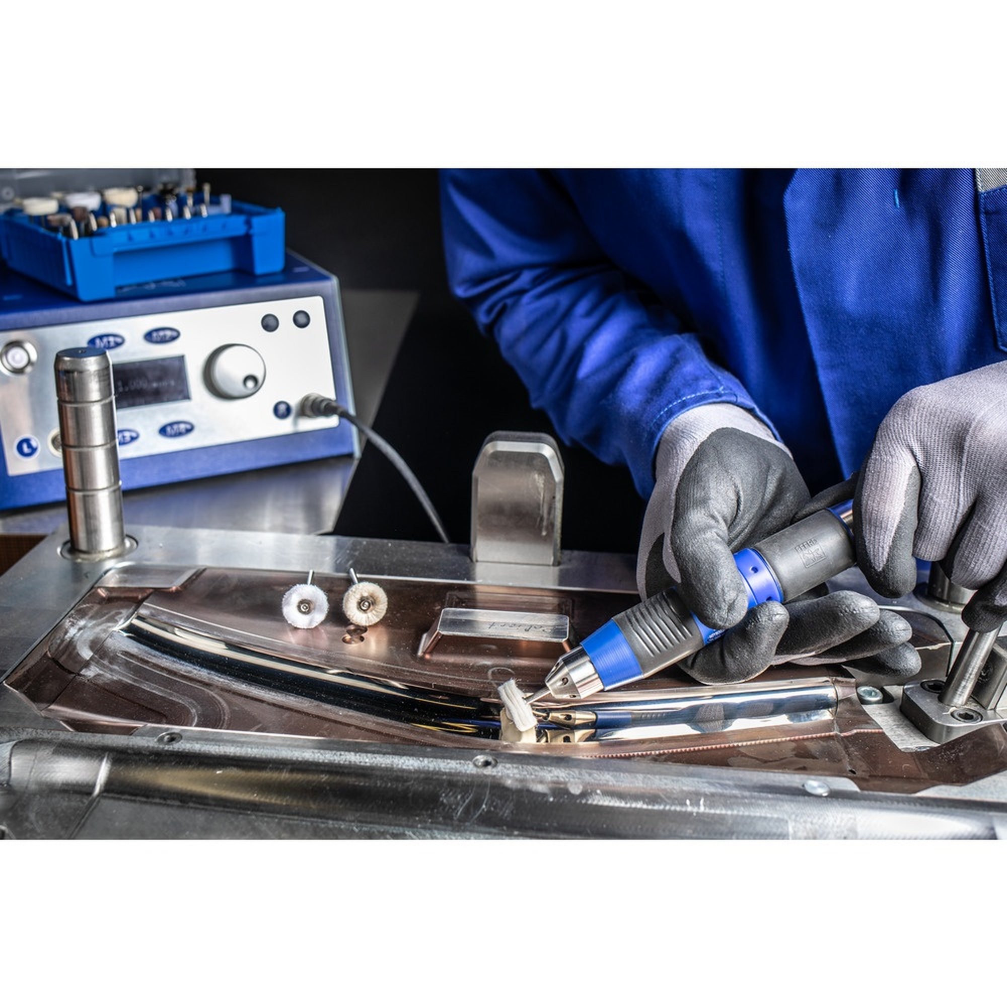 Das PFERD Tuchring-Set mit Schaft TR 2210/3 FL ist ein unverzichtbares Werkzeug für die Vor-, Glanz- und Hochglanzpolitur im Werkzeug- und Formenbau. Die Tuchringe mit Schaft werden in Kombination mit Polierpasten verwendet und sind in drei Ausführungen erhältlich.