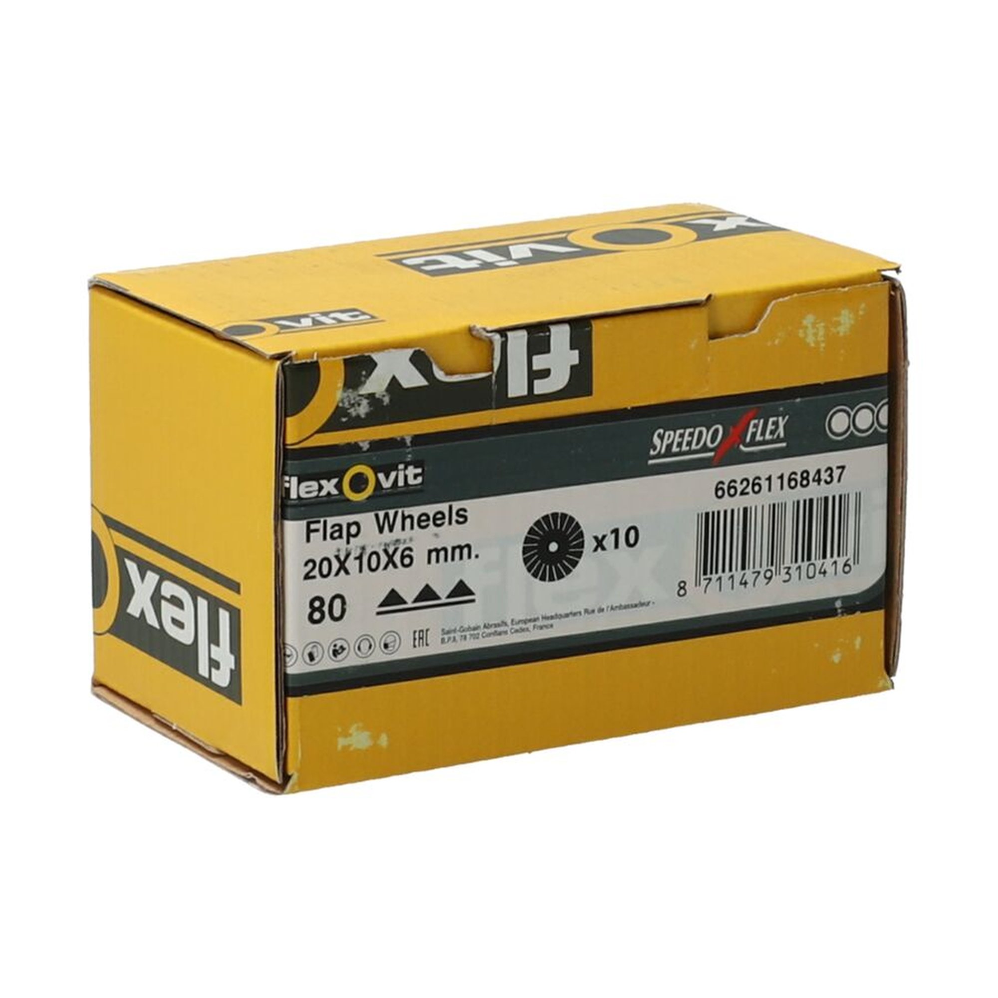 Die Lamellenschleifräder Flexovit SPEEDOFLEX mit den Maßen 20x10mm und einem 6mm Schaft sind eine hochwertige Wahl für diverse Schleifarbeiten. Diese Schleifräder zeichnen sich durch ihre aus Schleifgewebelamellen bestehende Konstruktion aus, die strahlenförmig um einen zentralen Kern angeordnet sind. Sie sind mit einer Körnung von K80 ausgestattet, was sie besonders effektiv für das Matt-, Glatt- und Polierschleifen macht.