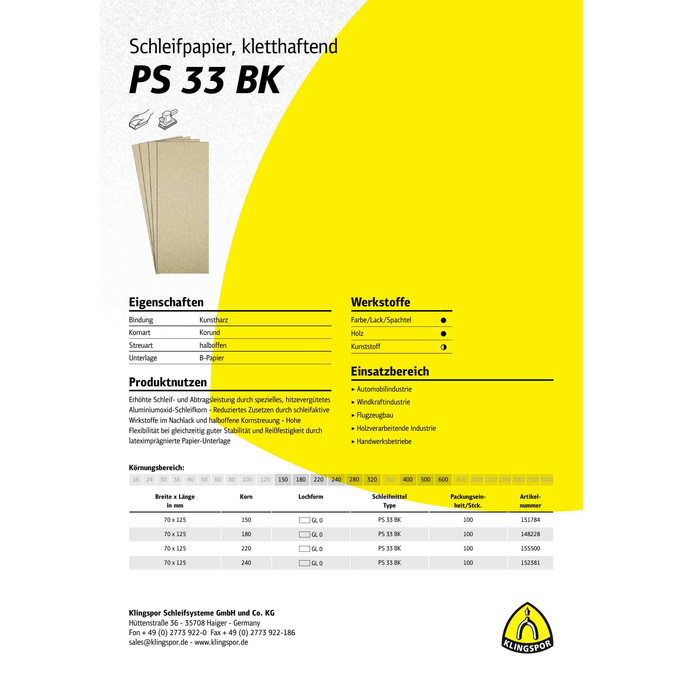 100 x Klingspor PS 33 BK Streifen kletthaftend, 80 x 133 mm Korn 220 Lochform GL18