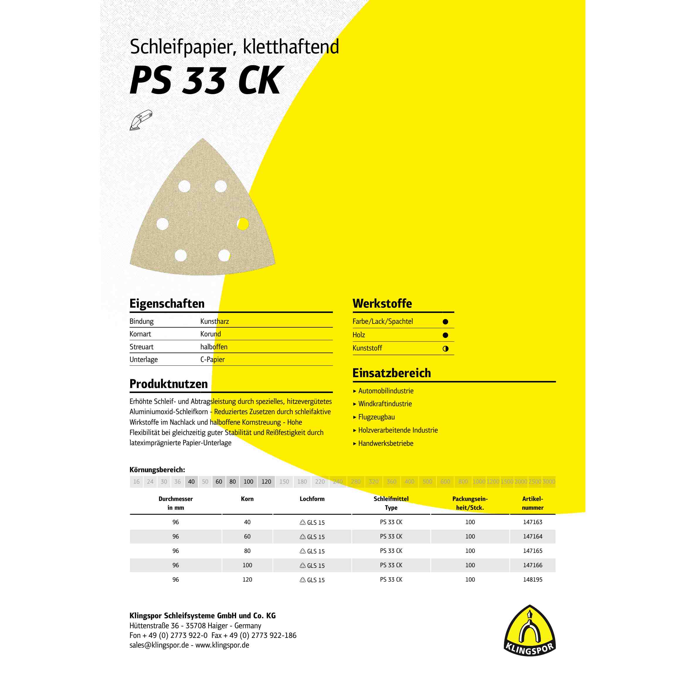 Besonderheiten: Das Klingspor PS 33 CK Schleifpapier ist ein hochwertiges Produkt, das sich speziell auf die Bearbeitung von Farben, Lacken und Spachtel konzentriert