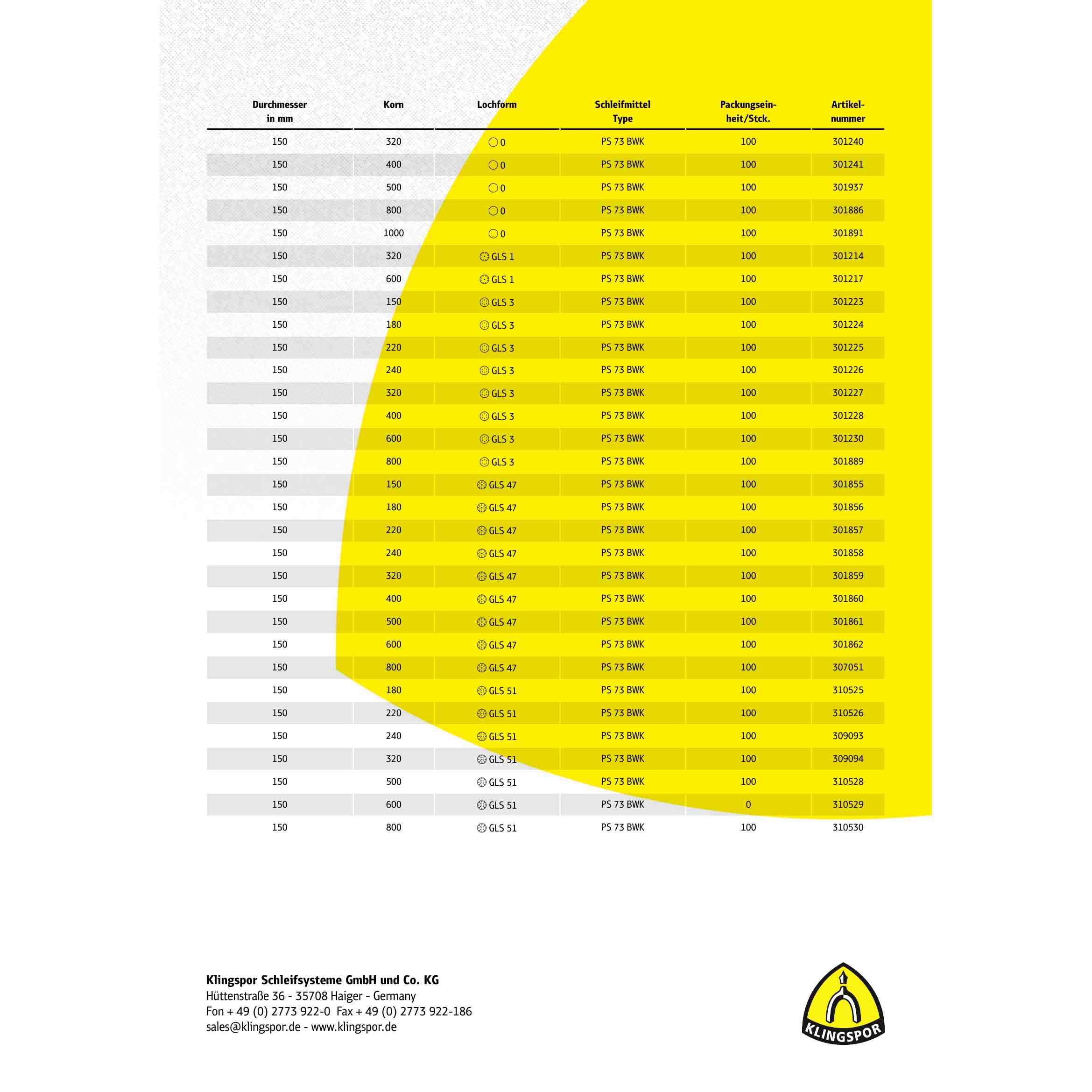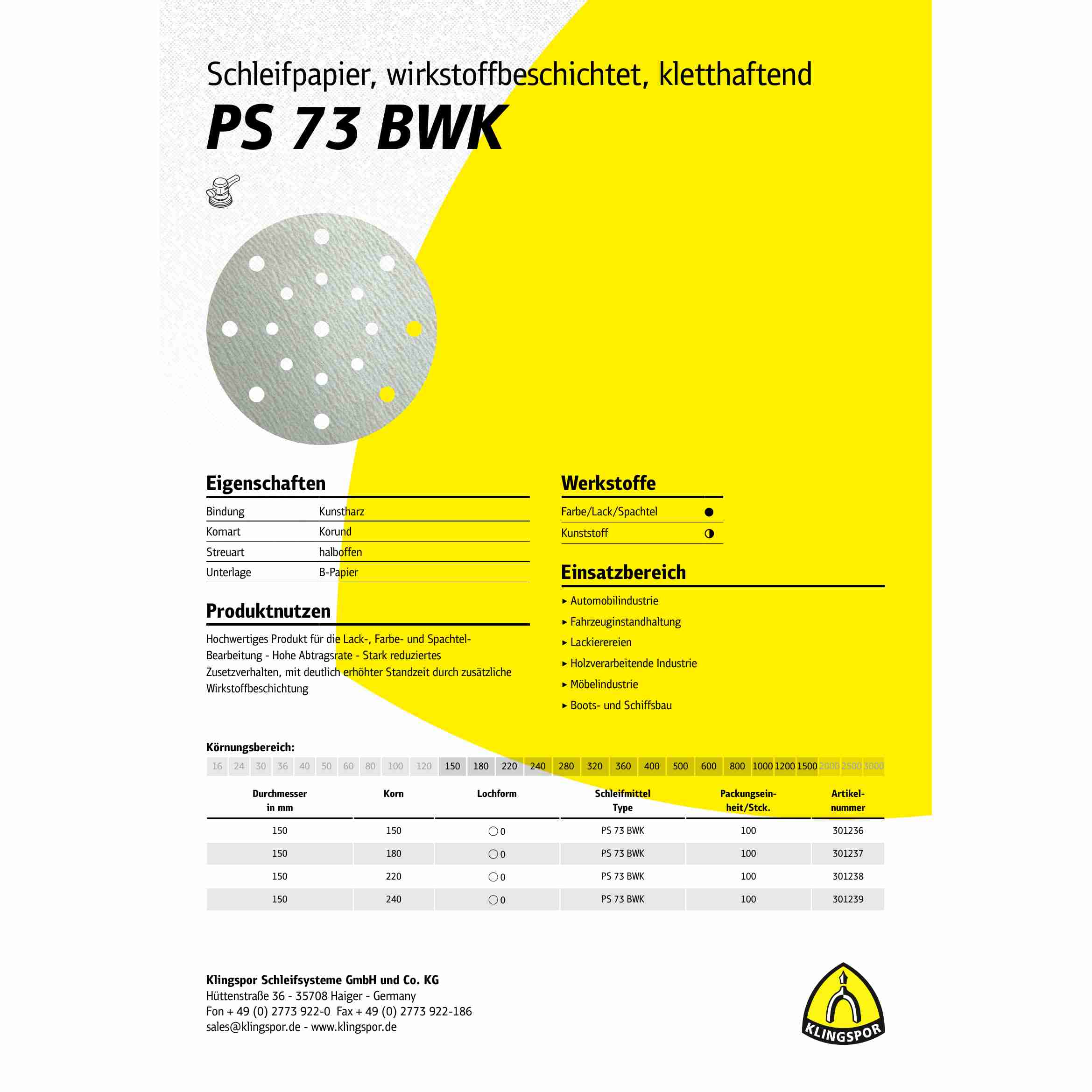 100 x Klingspor PS 73 BWK Scheiben kletthaftend wirkstoffbeschichtet, 150 mm Korn 240 Lochform GLS47