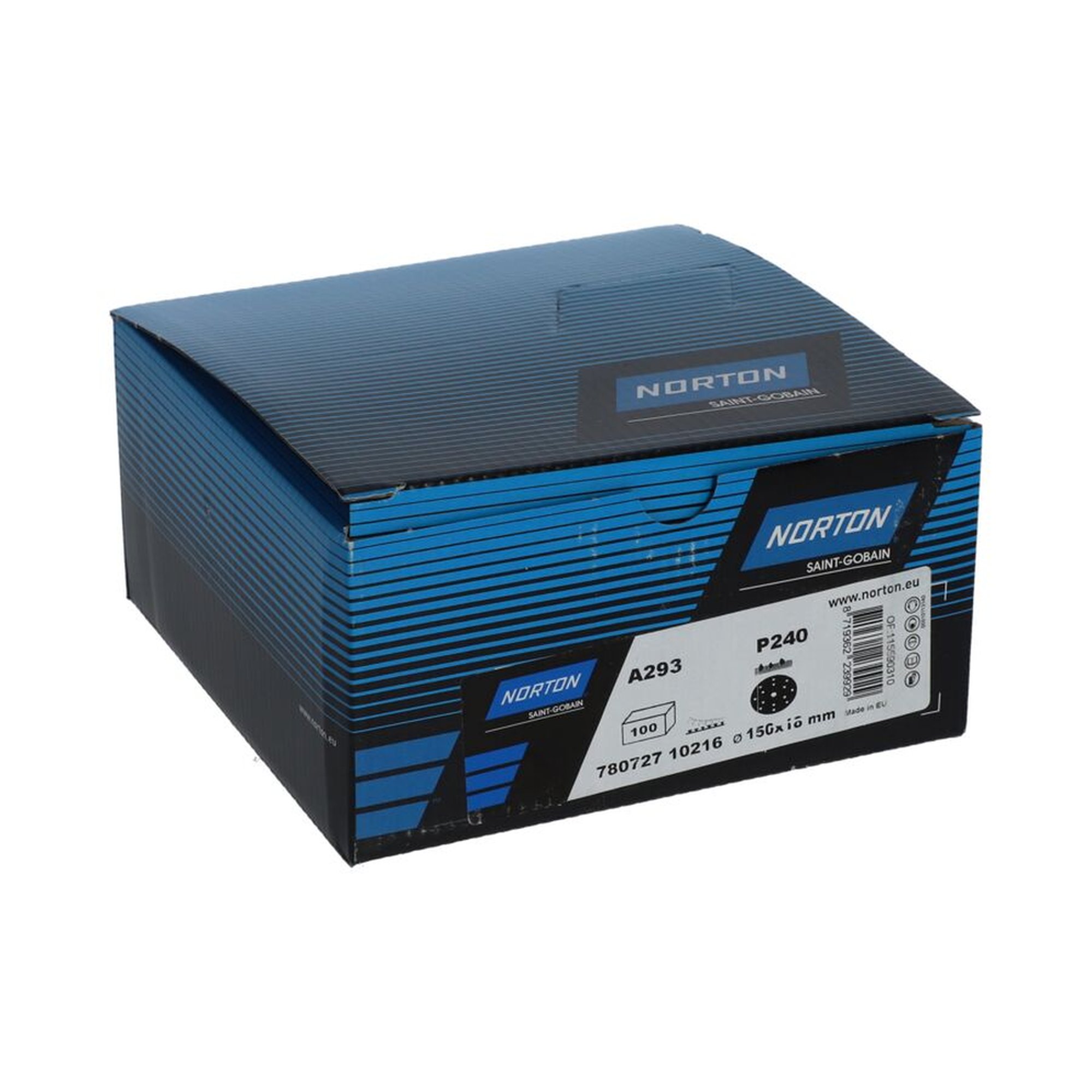 100 x Norton Anti-Zusetzen Scheiben Klett 150x18mm K240 14+1-Loch A293 Schleifscheiben