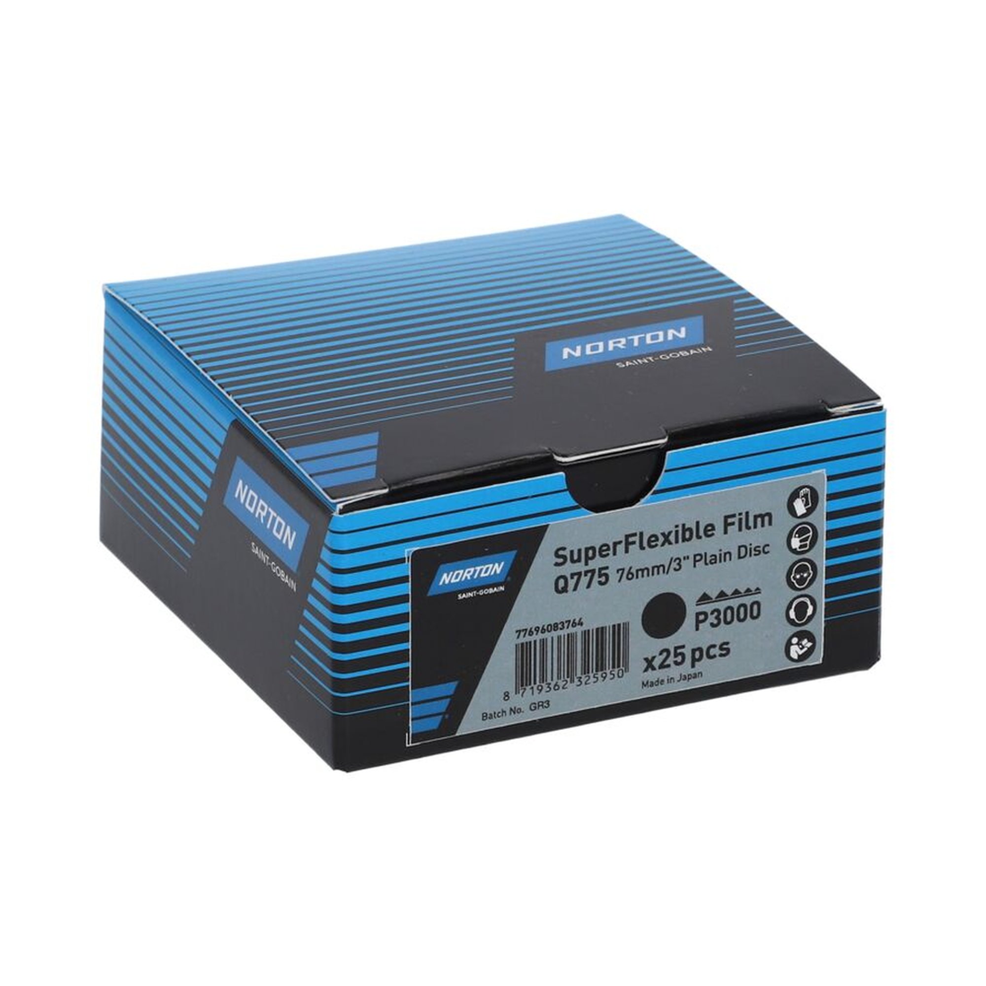 Hochwertige Norton Q775 Schleifscheiben, 76 mm, Körnung 3000, ideal für das Schleifen von Farben und Lacken. Optimiert für Tellerschleifer.,