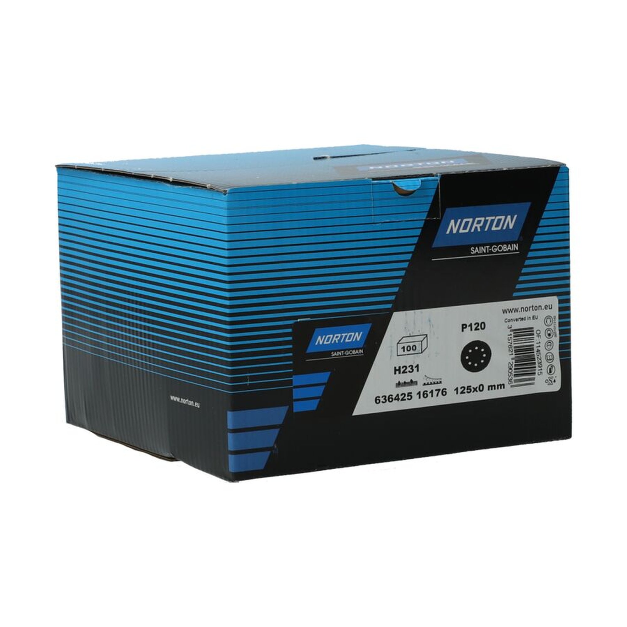 100 x Norton Klett Schleifscheibe H231, Ø 125 mm, Korn 120, 8 Loch, gelocht