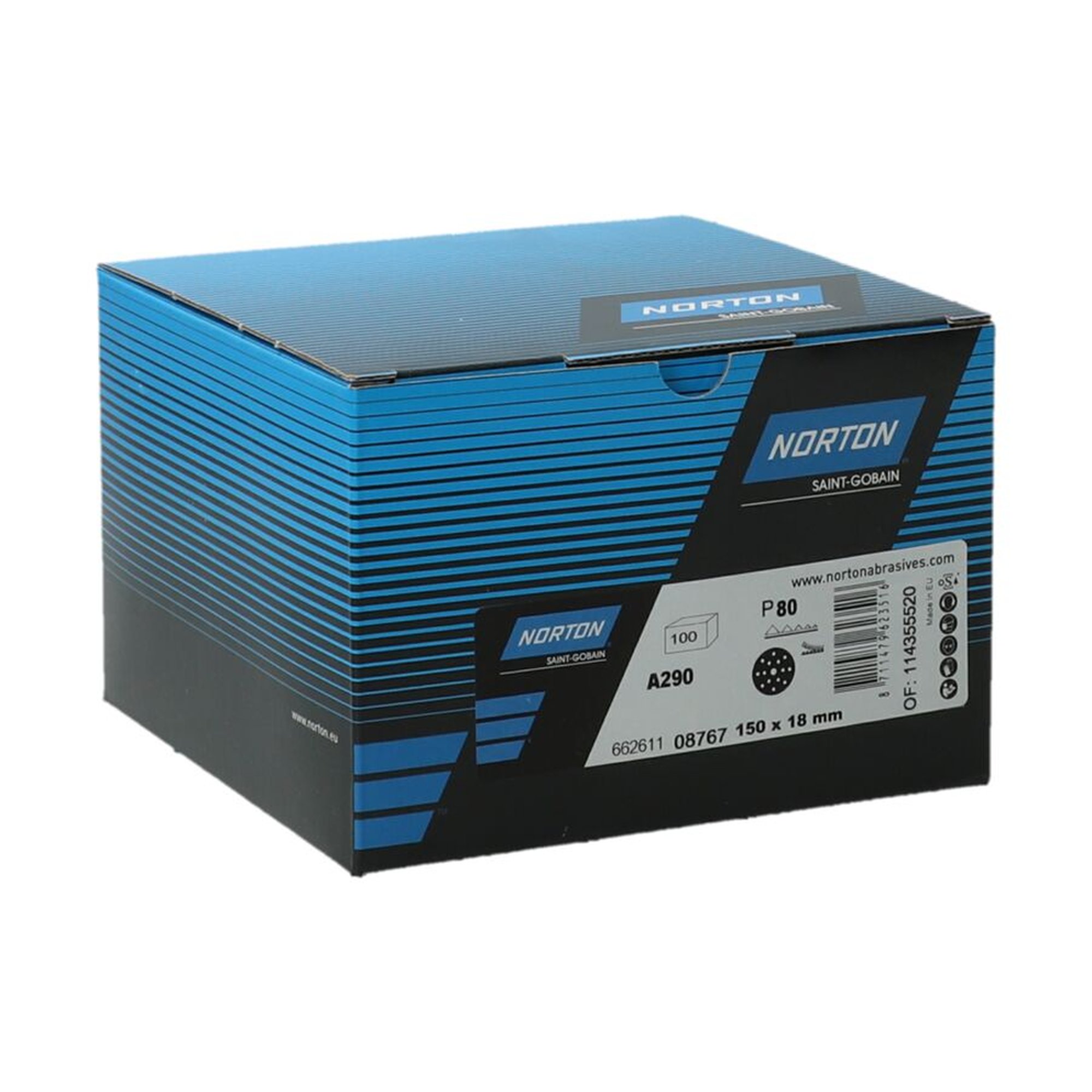 Die 100x NORTON Klett Schleifscheibe A290 ist ein hochwertiges Schleifpapier, das sich ideal für verschiedene Schleifarbeiten eignet. Mit einem Durchmesser von 150mm bietet es eine großzügige Schleiffläche, um effizient und schnell zu arbeiten. Das Korn 80 sorgt für einen groben Schliff, der besonders bei der Bearbeitung von harten Materialien wie Metall oder Holz von Vorteil ist.
