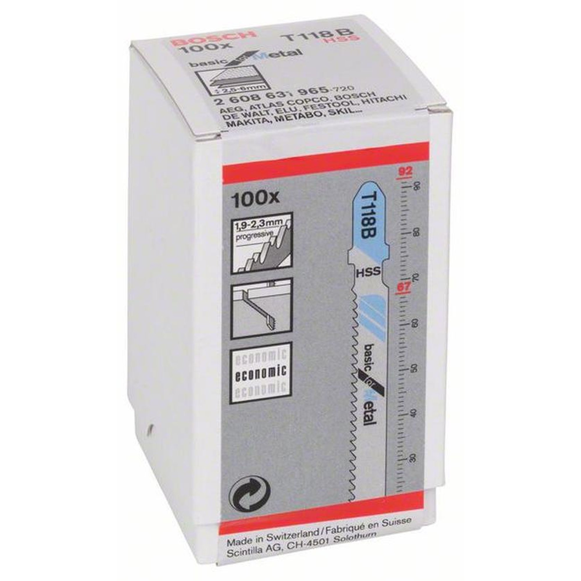 100x BOSCH Stichsägeblätter T-Schaft T 118 B Basic für Metall