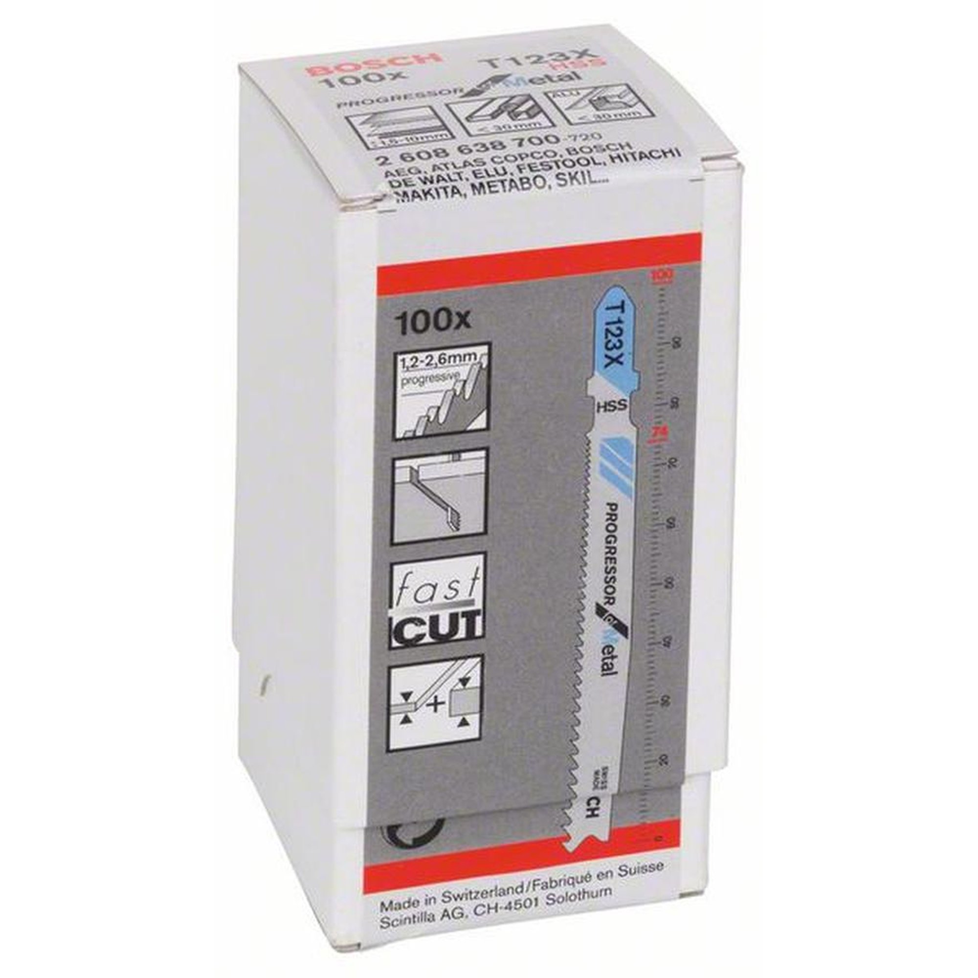 100x BOSCH Stichsägeblätter T-Schaft T 123 XF Progressor für Metall, Alu, Bauholz