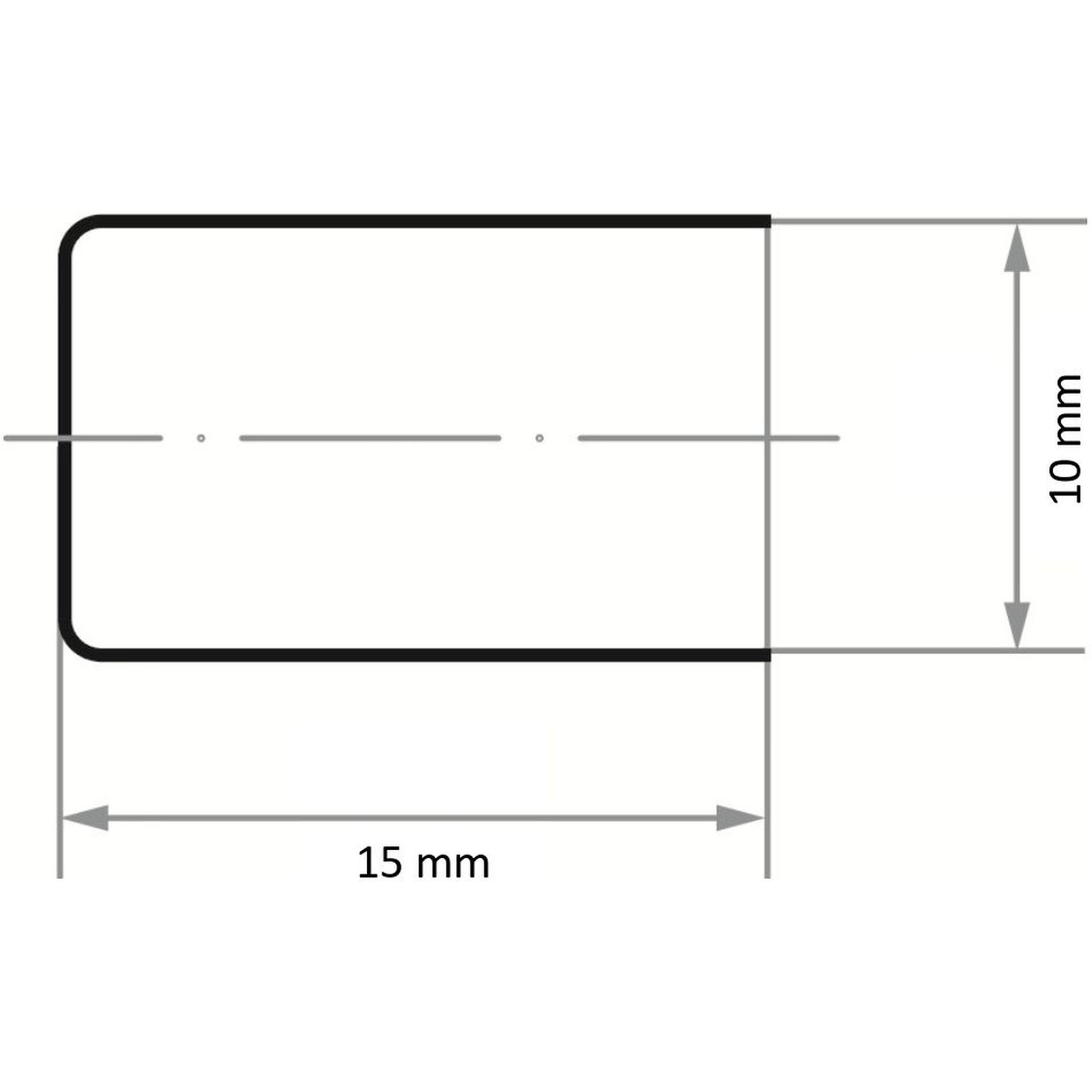 Die Schleifkappen haben eine zylindrische Form mit den Maßen 16x26mm und sind mit Korn 80 versehen. Dieses grobe Korn ermöglicht ein schnelles und effektives Schleifen der genannten Materialien.