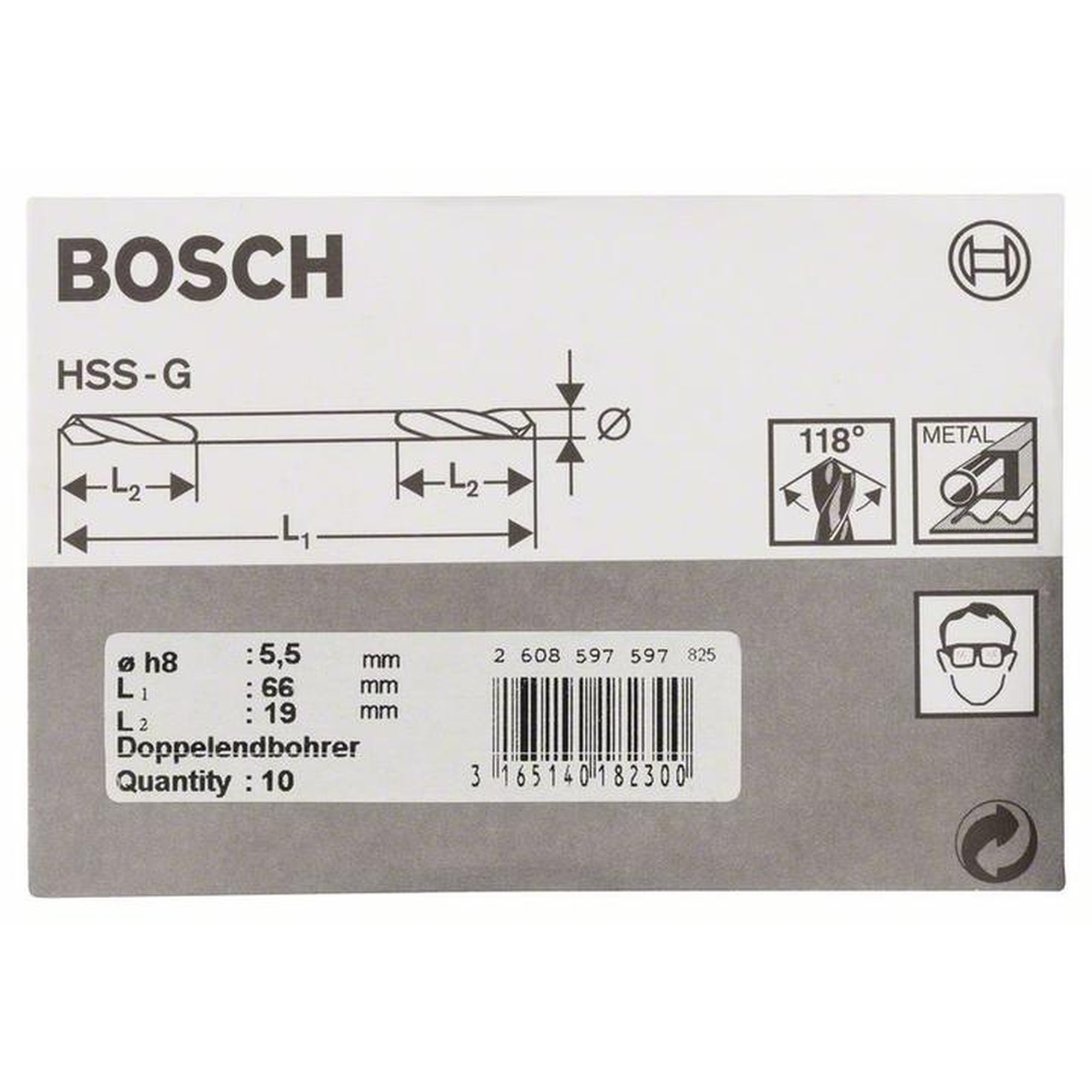 10x Bosch Professional Doppelendbohrer HSS-G geschliffen, Ø 5,5 x 19 mm
