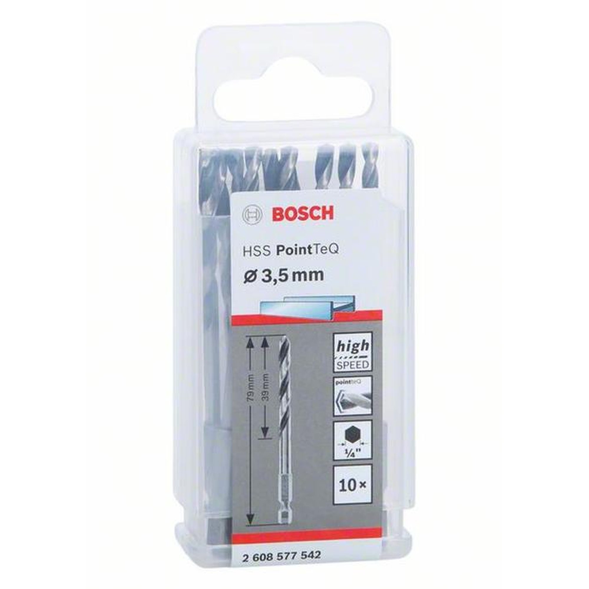 10x Bosch Professional HSS-Spiralbohrer PointTeQ mit Sechskantschaft , Ø 3,5 x 39 mm